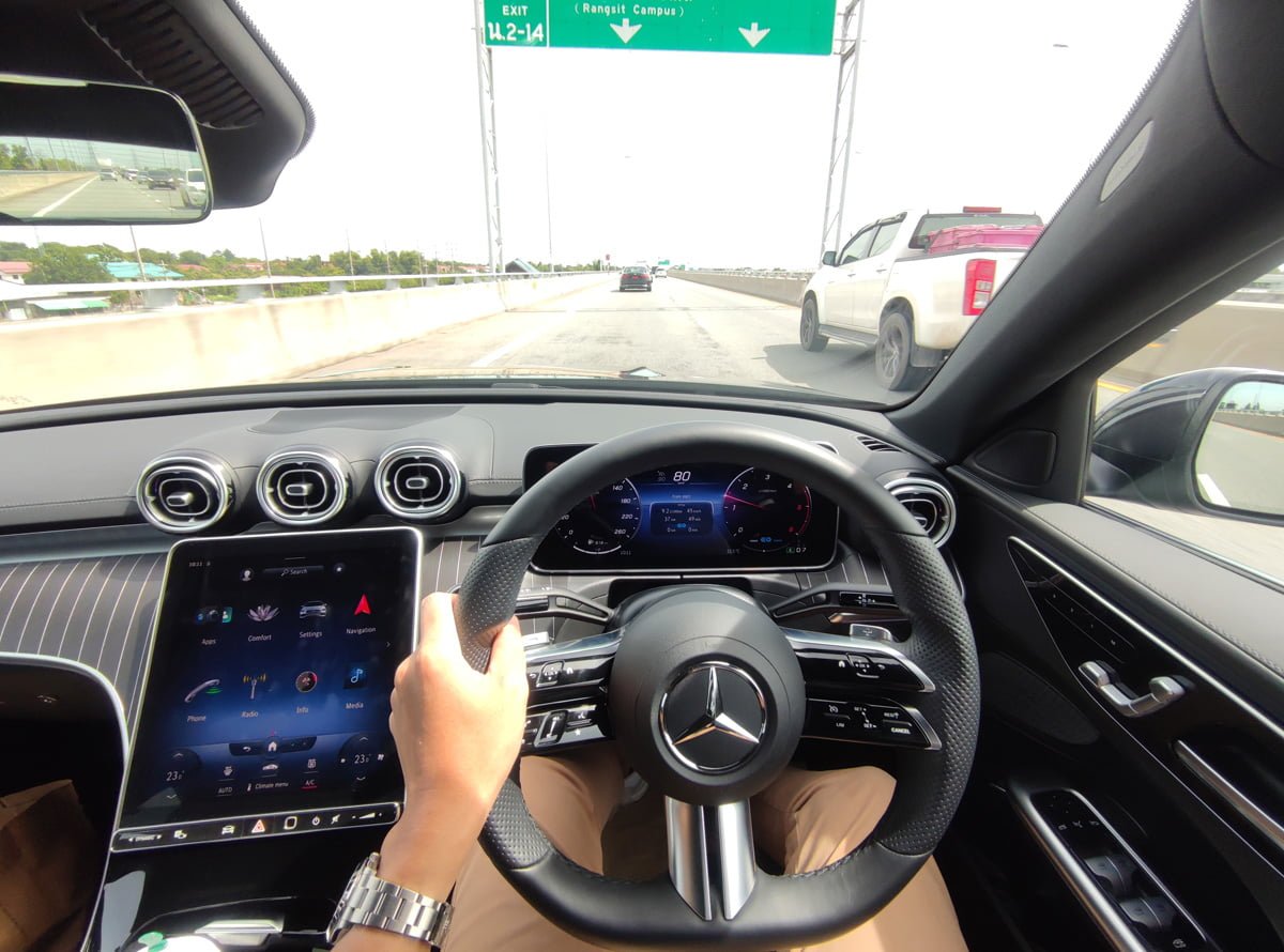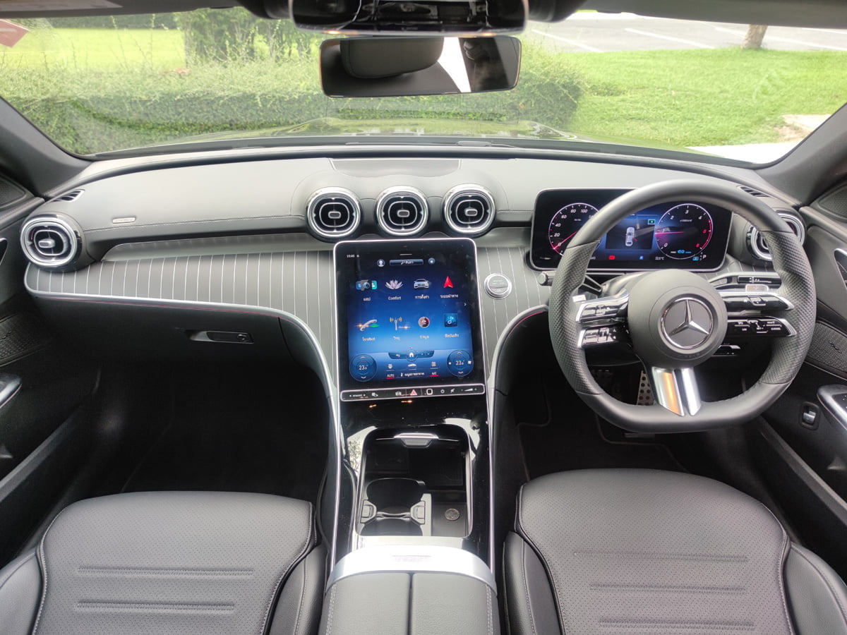 จุดที่น่าสังเกตอีกคือเรื่องของพวงมาลัย ในโหมด Comfort พวงมาลัยมีน้ำหนักเบามาก สำหรับเราเราคิดว่าดีสำหรับสุภาพสตรีที่ใช้รถเองแต่ถ้าสำหรับเราที่ได้ลองขับเราชอบโหมดสปอร์ตมากกว่า พวงมาลัยจะมีน้ำหนักมากขึ้นและรู้สึกรับกับมือของเรามากกว่า ซึ่งในช่วงนี้เข้าโค้ง เร่งแซงหรือในจังหวะที่กระชั้นชิดมีความมั่นใจมากกว่า ช่วงล่างก็ไม่ได้โยนตัวอะไรมาก เครื่องยนต์แรงขึ้นเกียร์เข้าสมูทขึ้น รวมไปภึงภายในที่กว้างขึ้นแต่ถ้าเทียบกับรุ่น Avantgarde นั้น 90% เหมือนกันหมด เพียงแต่ว่าจุดหลักใหญ่ๆ มันก็จะมีเรื่องของหลังคาพาโนรามิกซันรูฟและเรื่องของฟังชั่นและออฟชั่นการใช้งานต่างๆ เพียงเล็กน้อยแต่ว่ามีราคาห่างกันถึง 400,000 บาท เลยทีดียว ซึ่งในรุ่น AMG Dynamic มีราคาอยู่ที่ 2,990,000 บาทซึ่งเมื่อเทียบกับรุ่นเดิมดีกว่าทุกมิติแต่ถ้าเทียบกับรุ่น Avantgarde ถูกกว่า ในส่วนของข้อดีรุ่น C220 AMG Dynamic ภายในคือจัดเต็มทั้งในเรื่องของจอกลางขนาดใหญ่ มีจอมาตรวัดขนาดใหญ่มาให้ รวมถึง option ที่สามารถสั่งการด้วยเสียง หรือเนวิเกเตอร์ที่มีการคำนวณตำแหน่งแบบเรียลไทม์ ในเรื่องของความเร็วความแรงก็ถือว่าตอบโจทย์เพราะว่าเป็นเครื่องยนต์ดีเซล มีแรงบิดค่อนข้างเยอะและยังเสริมกำลังด้วยมอเตอร์ไฟฟ้า EQ Boost อีกทั้งพวงมาลัยยังสามารถปรับได้ตามความต้องการว่าอยากขับในโหมดไหน เราสามารถปรับช่วงล่างคนละโหมดกับพวงมาลัยได้ด้วย ในเรื่องความประหยัดในรุ่นนี้ที่ใช้น้ำมันดีเซลถือว่าประหยัดพอสมควร ส่วนอีกจุดหนึ่งที่เราคิดว่าเป็นข้อด้อยก็คือ option ยังให้มาไม่ครบเท่าที่ควรไม่ว่าจะเป็นเรื่องของกล้องมองรอบคันหรือ Adaptive cruise control ในราคาเกือบ 3,000,000 บาทอาจจะดูหนักหน่วงไปซักเล็กน้อยสำหรับรถระดับนี้