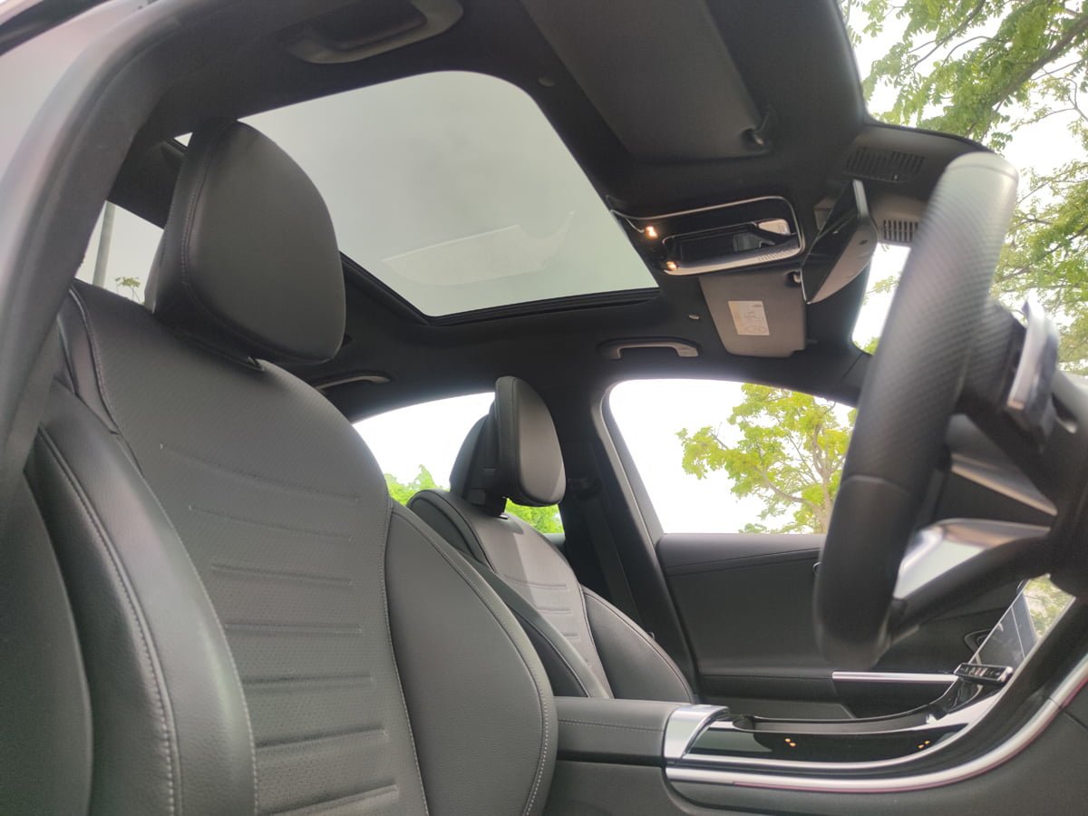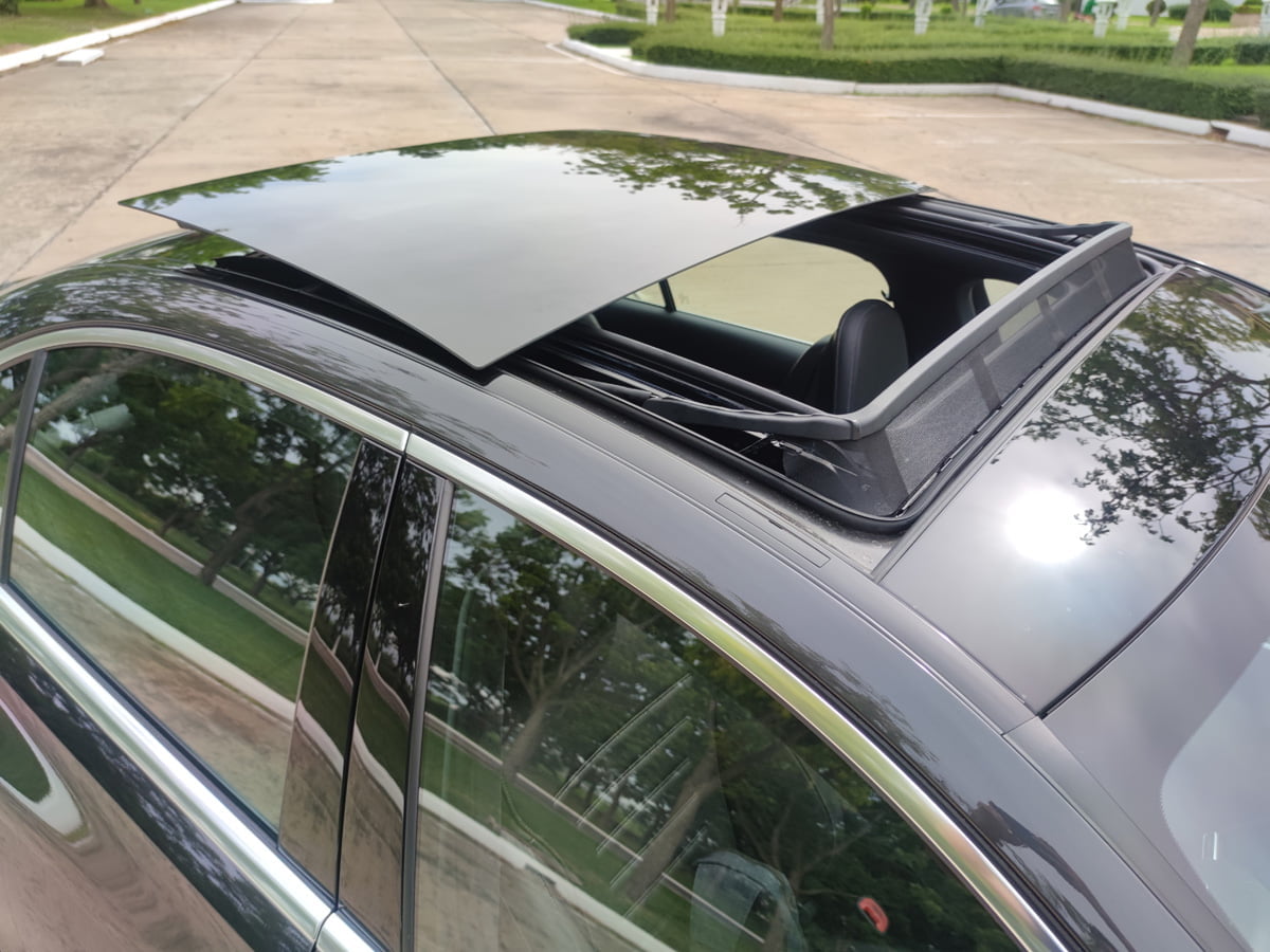 ไปดูกันที่ด้านบนกันบ้าง มีหลังคาด้านบนเป็นพาโนรามิคซันรูฟขนาดใหญ่มาให้ด้วย สามารถเลื่อนเปิด-ปิดได้ด้วยระบบไฟฟ้า มีการทำงานเหมือน S-Class หากต้องการเปิดปิดก็สามารถทัชสกรีนในบริเวณเพียงแค่นี้ก็สามารถเปิดหลังคาได้แล้ว ซึ่งจะเปิดได้ในบริเวณตอนหน้าเท่านั้น ส่วนด้านหลังเปิดไม่ได้ นอกจากนี้ยังมีม่านอยู่ด้านในสามารถปิดได้