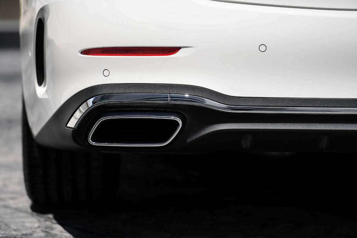 ด้านท้ายก็เหมือนกันหมดทุกอย่าง ไม่ว่าจะเป็นไเบรกดวงที่ 3 หรือดีไซน์ของไฟท้าย มีโลโก้บ่งบอกรุ่นที่เป็นโครเมียม แต่สิ่งที่ต่างกันก็คือกันชนด้านท้ายที่มีการดีไซน์แตกต่างกัน อีกจุดหนึ่งก็คือกันชนล่างไม่มี Diffuser และท่อจะเป้นสแตนเลสรูปวงรีซึ่งไม่เหมือนกันกับ AMG ที่เป็นลักษณะสี่เหลี่ยม