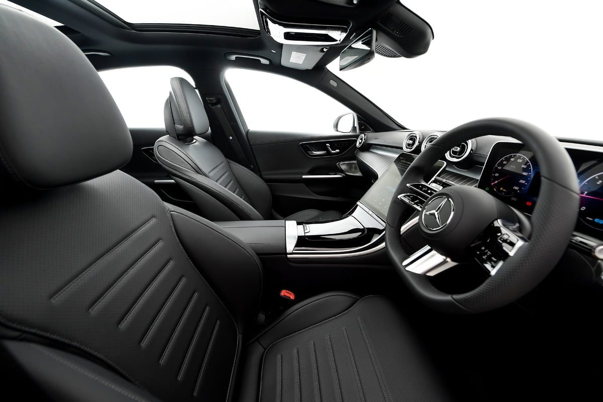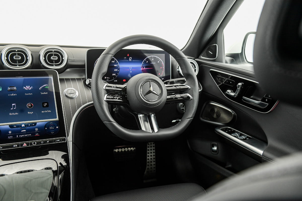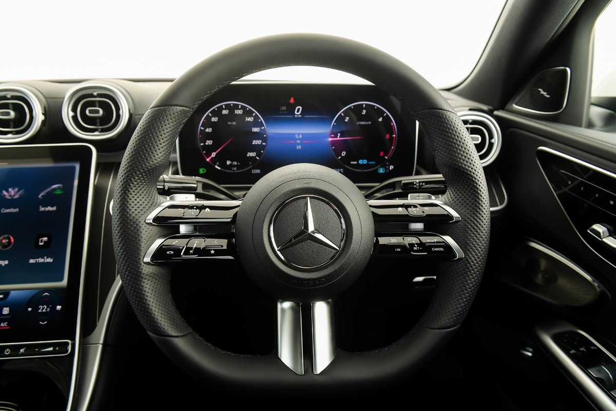 New Mercedes-Benz C 220d AMG Dynamic (W206) การตกแต่งที่แสดงถึงเอกลักษณ์ชัดเจนของ AMG Line ทำให้ภายนอกของตัวรถมอบความรู้สึกสปอร์ตที่ไม่เหมือนใครใน C-Class AMG Line สื่อถึงการออกแบบที่ทรงพลังอย่างชัดเจน คุณสมบัติทางเทคนิคยังช่วยให้คุณขับสนุกขึ้นอย่างเห็นได้ชัด รวมถึงระบบกันสะเทือนแบบสปอร์ตปราดเปรียวพร้อมระบบบังคับเลี้ยวโดยตรง