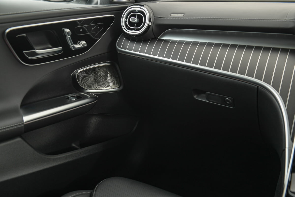 มาต่อกันที่แผงประตูด้านในฝั่งคนขับ เรื่องที่แตกต่างจากเดิมคือดีไซน์ที่ใหม่ทั้งหมด แผงประตูเป็นแบบหุ้มหนังซึ่งเป็นวัสดุบุนุ่มสลับกัลโครเมียมและมีพื้นผิวแบบ Gloss Black ความแตกต่างจากรุ่นก่อนก็คือตัวปรับระดับที่นั่งผู้ขับขี่ที่มีความละเอียดมากขึ้น รวมทั้งเปลี่ยนเป็นแบบระบบสัมผัสไม่ใช่แบบออกแรงดัน นอกจากนี้ยังมีหน่วยบันทึกความจำสำหรับตำแหน่งคนขับ 3 ความจำ กระจกปรับออโต้ได้ทั้ง 4 บาน ส่วนที่ปรับกระจกมองข้างเป็นแบบสัมผัส อีกทั้งรุ่นที่ประกอบในไทยจะใช้ลำโพงของ Burmester®