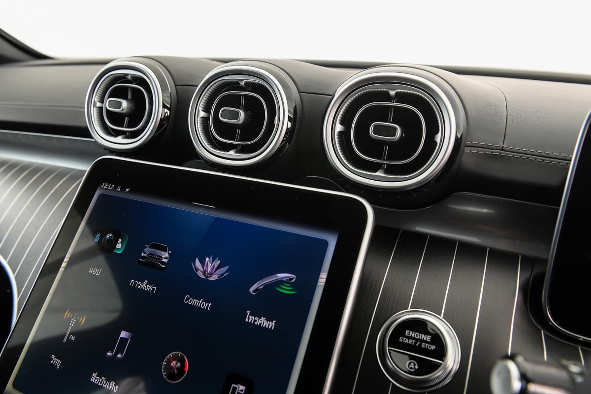 แอร์จะเป็นดีไซน์ใหม่สีงเงินสวยงามเข้ากับภายในห้องโดยสาร โดยเป็นระบบควบคุมอัตโนมัติ Thermatic แบบ 2 โซน สามารถเปิดได้จากหน้าจอสัมผัสตรงกลางได้เลย มาพร้อมกับไฟ ambient light ในช่องแอร์แบบเต็มระบบ ซึ่งไฟ ambient light ใน The New C-Class รุ่นนี้มีความละเอียดมากกว่ารุ่นเดิมและสีเข้มกว่ารุ่นเดิมค่อนข้างมาก อีกทั้งยังมีสีให้เลือกกว่า 64 เฉดสี