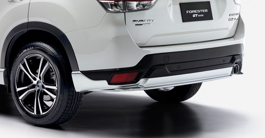 ชุดแต่ง GT Edition สำหรับ New Forester Eyesight ได้รับการออกแบบรูปลักษณ์เพื่อชาวเอเชียโดยเฉพาะ ซึ่งจะช่วยให้เสริมความแข็งแกร่งและความโฉบเฉี่ยวให้กับ Forester โดยชุดแต่งภายนอกประกอบด้วย สเกิร์ตด้านหน้า สเกิร์ตด้านหลัง สเกิร์ตด้านข้างซ้าย-ขวา สปอยเลอร์หลังคา และล้ออัลลอยสั่งทำพิเศษขนาด 18 นิ้ว