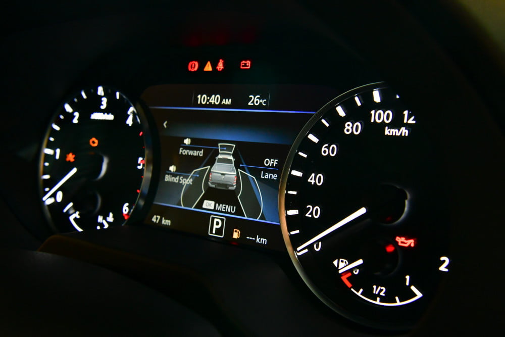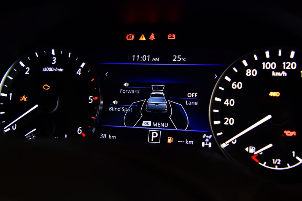 ในรุ่น Double Cab รุ่น PRO-4X, PRO-2X และ King Cab Calibre V 7AT* นิสสันเติมเต็มความสะดวกสบายและความปลอดภัยด้วยช่วยเหลือการขับขี่ขั้นสูงหรือ Advance Driver Assistance System (ADAS) ทั้งเทคโนโลยีเตือนเมื่อเสี่ยงต่อการชนอัจฉริยะ (Intelligent Forward Collision Warning – IFCW) ที่จะส่งสัญญาณเสียงพร้อมสัญลักษณ์เตือนบนหน้าปัด หากพบความเสี่ยงที่จะเกิดอุบัติเหตุจากการชนด้านหน้าก่อนที่เทคโนโลยีช่วยเบรกฉุกเฉินอัจฉริยะ (Intelligent Emergency Braking – IEB) จะช่วยลดความเร็วและเบรกเพื่อลดความรุนแรงที่จะเกิดขึ้นหากเกิดอุบัติเหตุ เทคโนโลยีเตือนเมื่อรถออกนอกช่องทาง (Lane Departure Warning: LDW) จะเตือนผู้ขับขี่หากระบบจับทิศทางได้ว่ารถกำลังเบี่ยงออกนอกช่องทางโดยไม่ได้เปิดสัญญาณไฟเลี้ยว และหากรถยังคงออกนอกเส้นทาง เทคโนโลยีช่วยควบคุมรถเมื่อออกนอกช่องทางอัจฉริยะ(Intelligent Lane Intervention – ILI) จะทำงานโดยส่งสัญญาณให้ระบบเบรกทำงานและส่งแรงเบรกเพื่อดึงรถกลับสู่ช่องทางให้ผู้ขับขี่รู้ตัว เทคโนโลยีเตือนจุดอับสายตา (Blind Spot Warning – BSW) จะส่งเสียงสัญญาณพร้อมไฟกระพริบที่กระจกมองข้างเตือนให้รู้ว่าขณะนั้นกำลังมีรถคันอื่นอยู่ในช่องทางขับขี่ด้านข้างซึ่งผู้ขับขี่ไม่สามารถมองเห็น ซึ่งทำงานร่วมกับเทคโนโลยีป้องกันการชนจากจุดอับสายตาอัจฉริยะ (Intelligent Blind Spot Intervention – IBSI) ที่จะส่งแรงเบรกดึงรถกลับสู่ช่องทางอย่างนุ่มนวล การถอยรถออกจากช่องจอด เป็นอีกจุดหนึ่งที่มีความเสี่ยงต่อการเกิดอุบัติเหตุ เทคโนโลยีตรวจจับวัตถุด้านหลังรถขณะถอย (Rear Cross Traffic Alert – RCTA) จะส่งสัญญาณเตือนพร้อมไฟกระพริบเตือน หากตรวจพบรถที่กำลังเคลื่อนเข้ามาทางด้านหลังทั้งซ้ายและขวา สัญญาณเตือนพร้อมไฟกระพริบที่กระจกมองข้างด้านเดียวกันกับที่มีรถกำลังเคลื่อนมา นอกจากนี้ ยังมีระบบเปิด-ปิดไฟสูงอัตโนมัติ (High Beam Assist – HBA) จะปรับระดับไฟสูงลงมาเป็นไฟหน้าธรรมดาทันทีที่ระบบตรวจจับได้ว่ามีรถสวนมาทางด้านหน้า