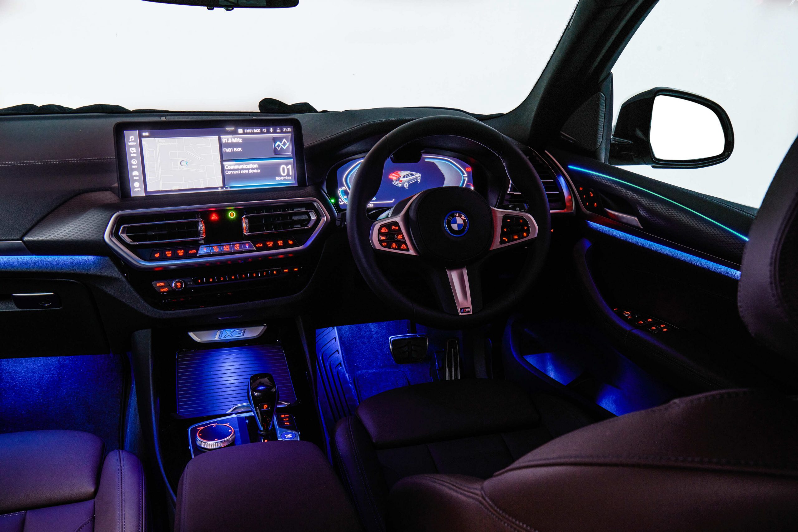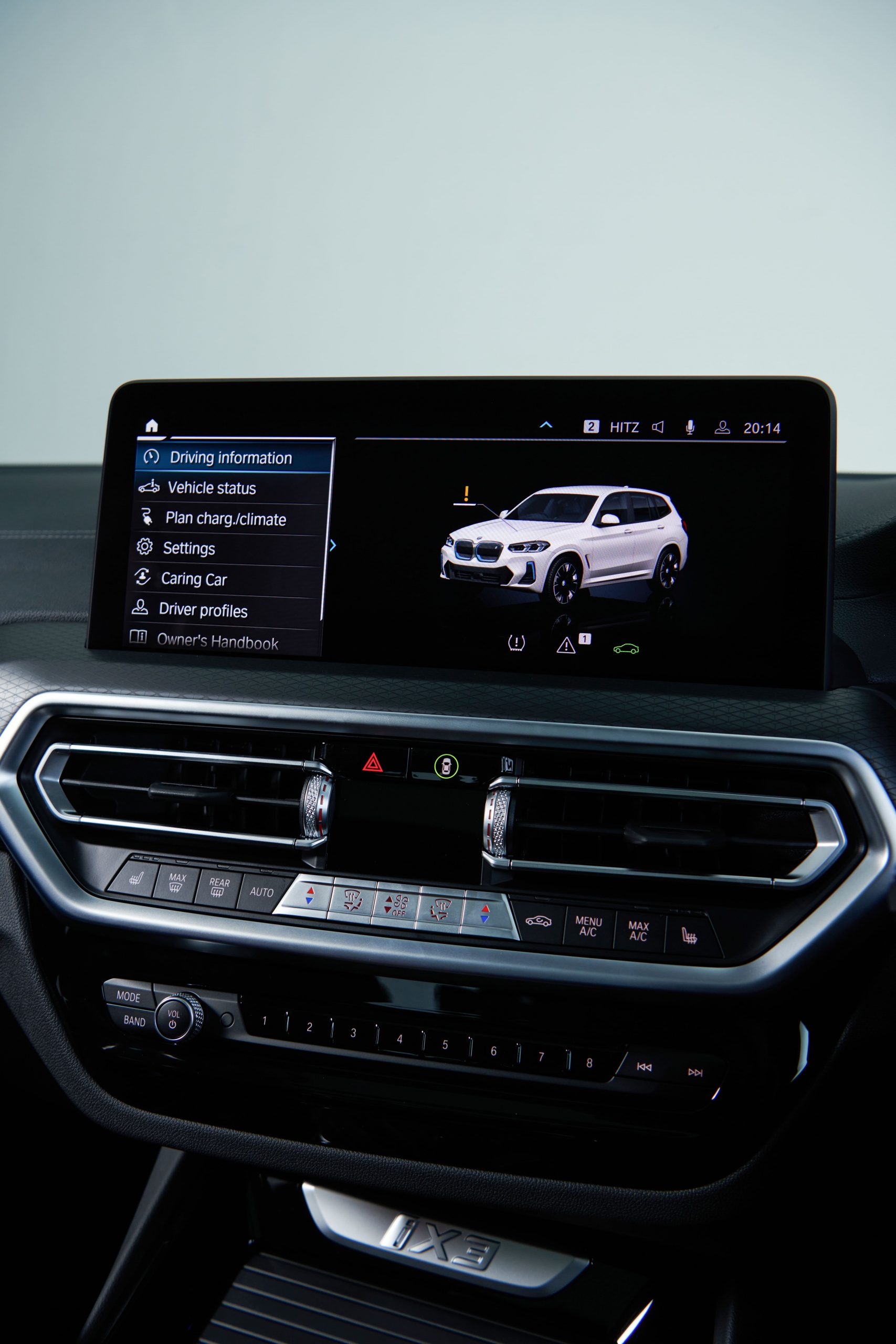 มีการตกแต่ง BMW i ด้วยสีฟ้า เช่น ที่ปุ่ม start/stop เน้นย้ำความเป็นยนตรกรรมที่มีระบบขับเคลื่อนแบบไร้มลภาวะของ BMW iX3 ให้เห็นได้อย่างเด่นชัด นอกจากนี้มีหลังคากระจก Panorama หลังคากระจกนี้จะเปิดปิดได้โดยอัตโนมัติเพียงแค่กดปุ่มหรือใช้กุญแจรถและยังมาพร้อมกับฟีเจอร์ยกและเลื่อนหลังคา ม่านบังแดกแบบเลื่อนเปิด-ปิดได้ และแผงเบนทิศทางลม