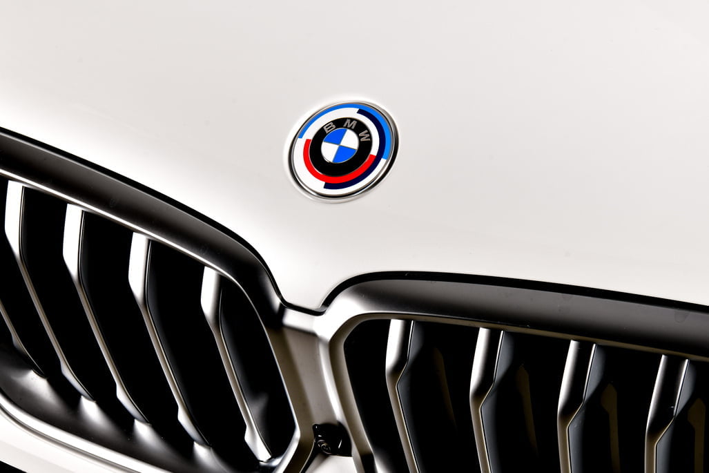โลโก้บีเอ็มดับเบิลยูพิเศษในครั้งนี้ ที่ได้รับการดีไซน์มาให้สื่อถึงกลิ่นอายแห่งความแรงเร้าใจตามแบบฉบับมอเตอร์สปอร์ต โดยได้รับแรงบันดาลใจจากโลโก้ที่ถูกนำมาใช้ในปี พ.ศ. 2516 ในการแข่งขันรถบีเอ็มดับเบิลยู มอเตอร์สปอร์ต ประกอบไปด้วยสามสีอันเป็นเอกลักษณ์ และสื่อความหมายที่แตกต่างกัน ได้แก่ สีฟ้า หมายถึงบีเอ็มดับเบิลยู สีแดง สื่อถึงความเร้าใจจากการแข่งขันมอเตอร์สปอร์ต และสีน้ำเงินเข้ม ที่สะท้อนถึงการหลอมรวมระหว่างบีเอ็มดับเบิลยูและความเร้าใจจากการแข่งรถ ผสมผสานกันอย่างลงตัว โดยทั้งสามสีมาในลายเส้นแบบครึ่งวงกลม โอบล้อมโลโก้บีเอ็มดับเบิลยูไว้ในสามทิศทางต่าง ๆ กันเพื่อสื่อถึงการเคลื่อนที่ของรถยนต์ในสนามแข่ง สอดประสานออกมาเป็นสามสีในตำนานบนโลโก้เฉลิมฉลองครบรอบ 50 ปีของบีเอ็มดับเบิลยู M