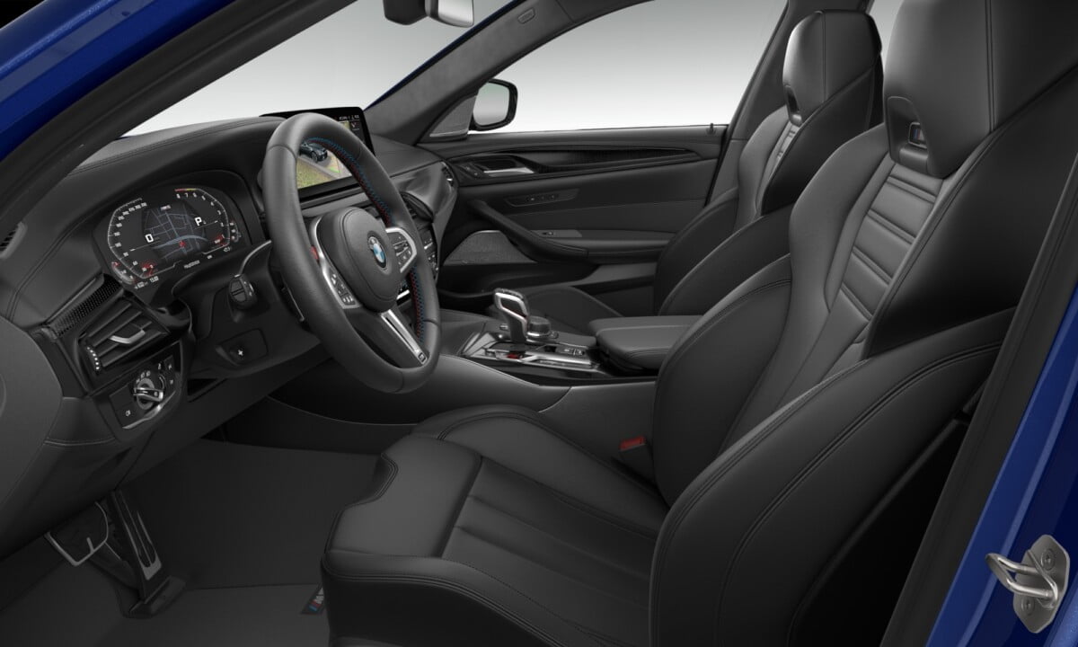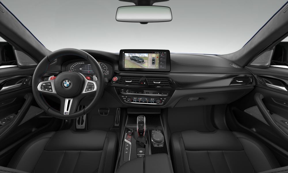 ภายในห้องโดยสารยังมีหน้าจอ Infotainment ขนาดใหญ่ 12.3 นิ้ว รองรับได้ทั้ง Apple CarPlay และ Android Auto รวมทั้งมีระบบนำทางบนคลาวด์ นอกจากนั้น ยังมีการปรับปรุงเบาะและคอนโซล ที่มีปุ่มใหม่ 2 ปุ่ม ได้แก่ ปุ่ม Set Up ที่ช่วยให้เข้าถึงการตั้งค่าต่าง ๆ ในการควบคุมรถได้ง่ายขึ้น ปุ่ม M Mode สำหรับการสลับการตั้งค่าโหมดในการขับขี่ Road และ Sport ได้รวดเร็วยิ่งขึ้น บีเอ็มดับเบิลยู M5 Competition ยังมีโหมด Track ที่ให้ความรู้สึกแบบ M อย่างแท้จริงราวกับอยู่บนสนามแข่ง