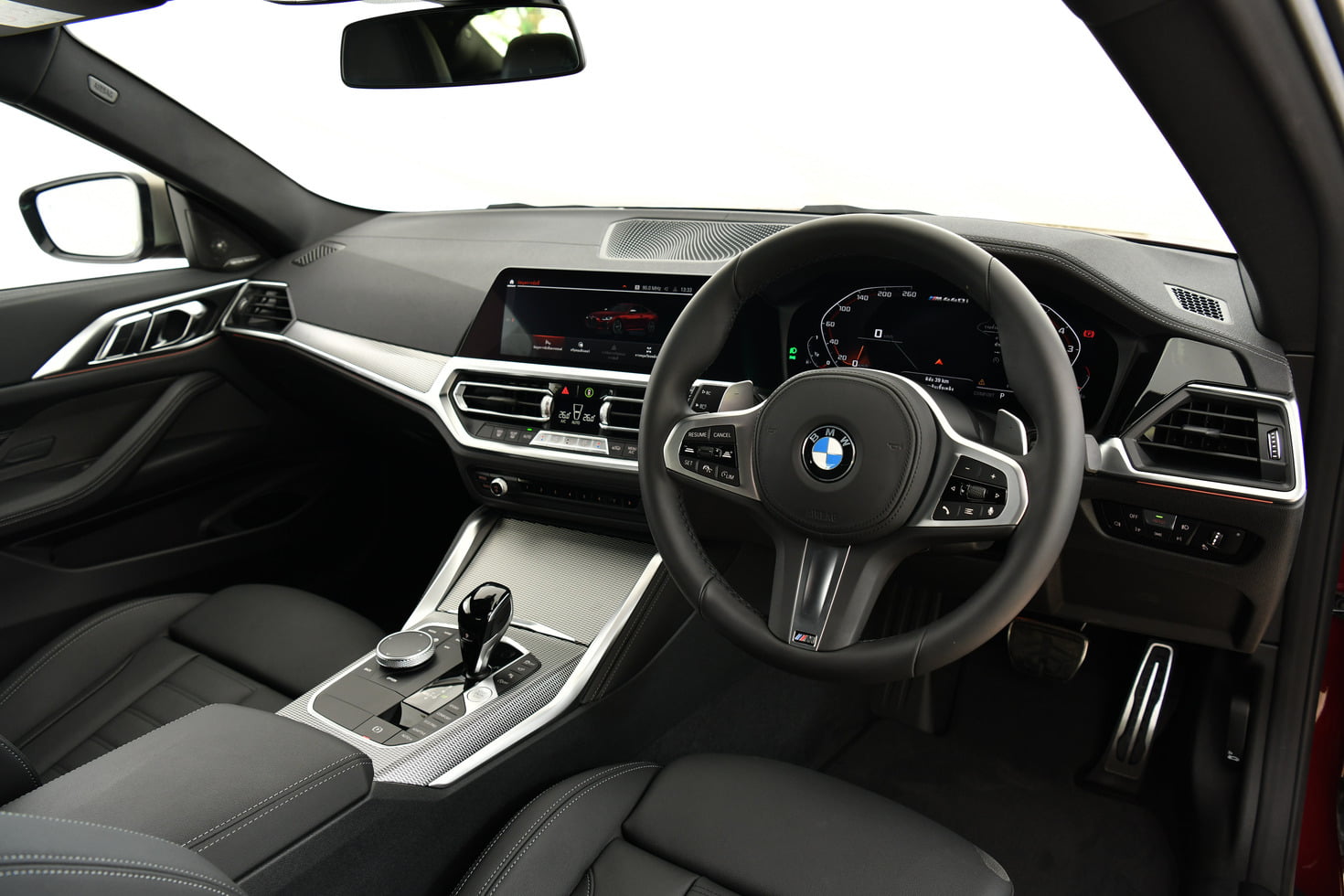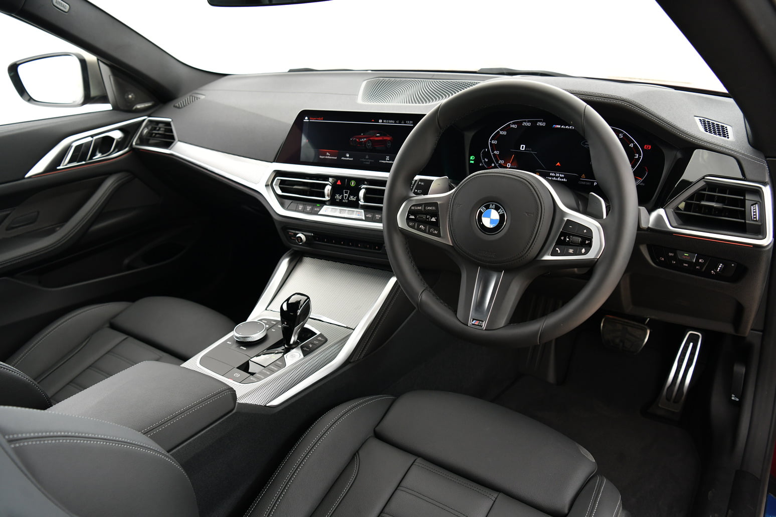 ความมุ่งมั่นของบีเอ็มดับเบิลยูที่จะมอบที่สุดแห่งประสบการณ์การขับขี่ยังสะท้อนออกมาผ่านการออกแบบห้องโดยสารของบีเอ็มดับเบิลยู M440i xDrive Coupé ใหม่ ที่มุ่งให้ความสำคัญกับผู้ขับขี่เป็นหลัก พร้อมมอบบรรยากาศความแรงในสไตล์ M ในทุกอณูด้วยพวงมาลัยหนังและเข็มขัดนิรภัยแบบ M พร้อมตกแต่งพื้นผิวภายในแบบ Aluminium Tetragon ตัดกับเพดานหลังคาภายในแบบ BMW Individual สีดำ anthracite ได้อย่างลงตัว