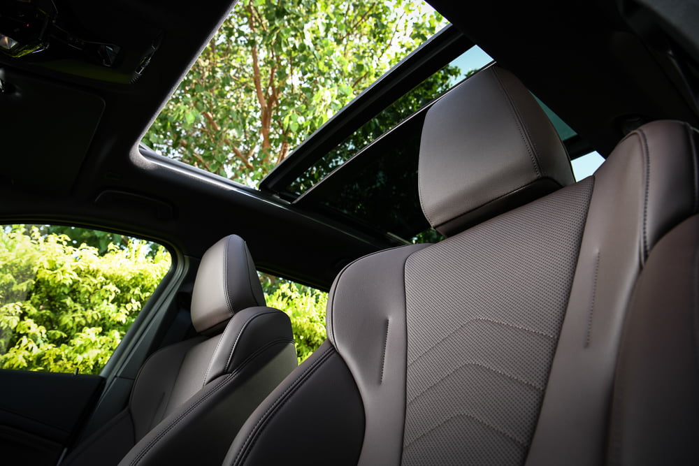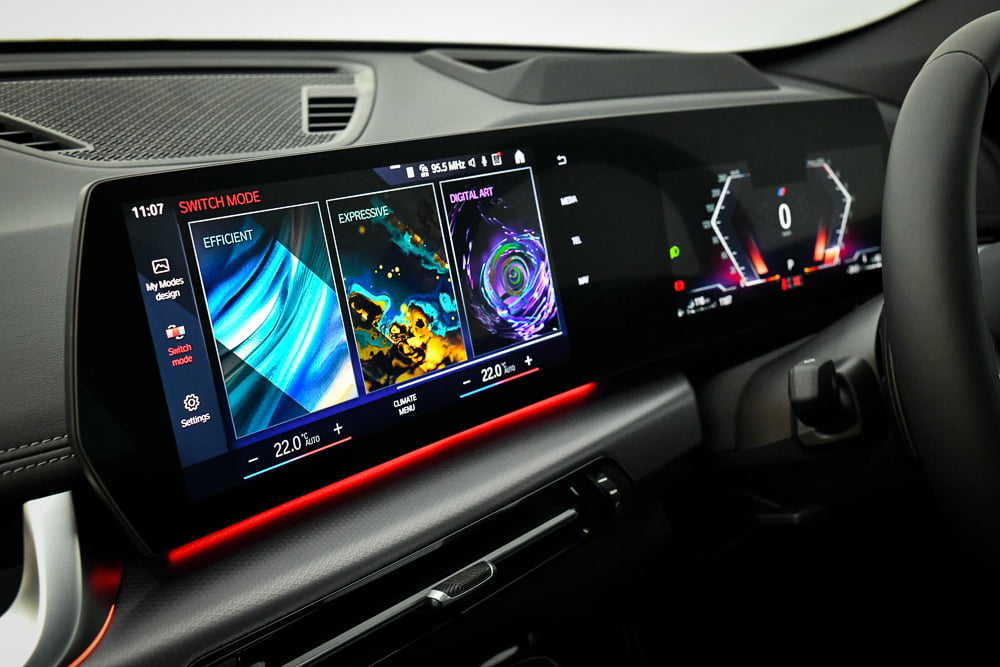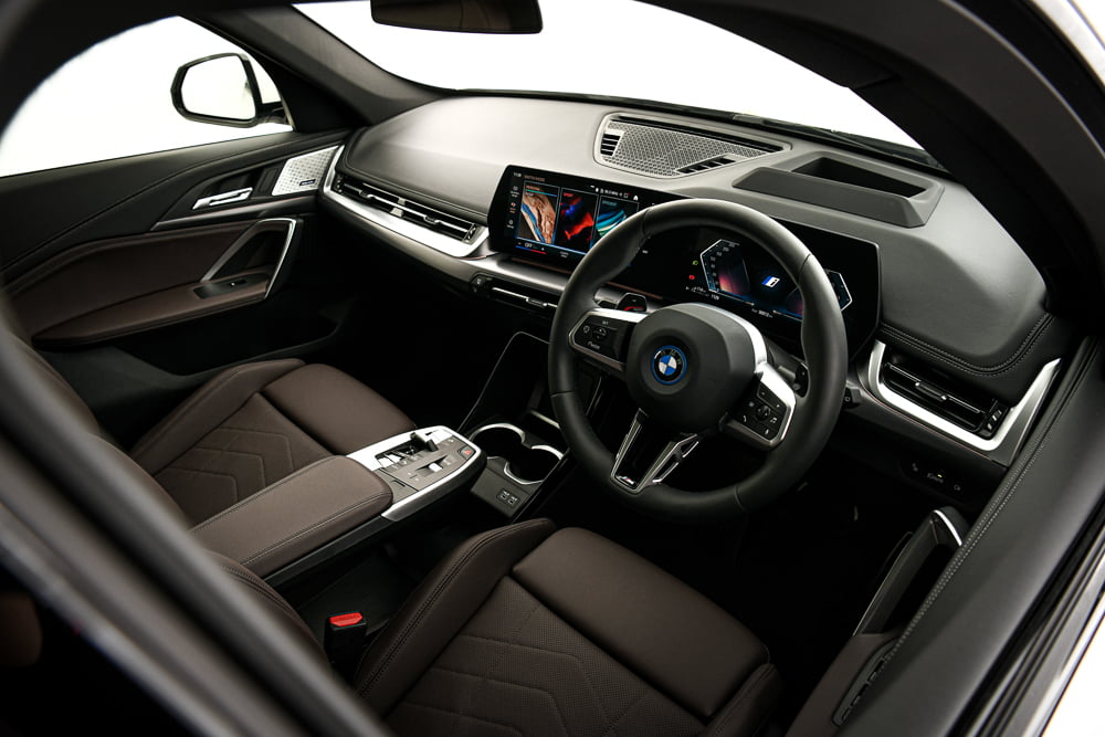 การตกแต่งภายในที่กว้างขวางได้รับการสร้างสรรค์อย่างพิถีพิถันจากวัสดุระดับพรีเมียม ไม่ว่าจะเป็นแผงตกแต่งภายในด้วยอลูมิเนียมลาย Hexacube Pale M คอนโซลด้านบนแบบ Luxury พวงมาลัยหุ้มหนังดีไซน์ M และหลังคาภายในดีไซน์ M สี Anthracite ซึ่งช่วยมอบความสะดวกสบายและความหรูหรายิ่งขึ้นให้กับทั้งผู้ขับขี่และผู้โดยสาร อุปกรณ์มาตรฐานยังประกอบด้วยเบาะนั่งตอนหน้าปรับไฟฟ้าพร้อมระบบจำตำแหน่งเฉพาะฝั่งคนขับและเบาะนั่งตอนหน้าดีไซน์สปอร์ตมอบความสะดวกสบายในขณะนั่งมากยิ่งขึ้น ชุดไฟส่องสว่างภายในห้องโดยสารยังมอบบรรยากาศระดับพรีเมียมที่ล้ำสมัยภายในรถด้วย