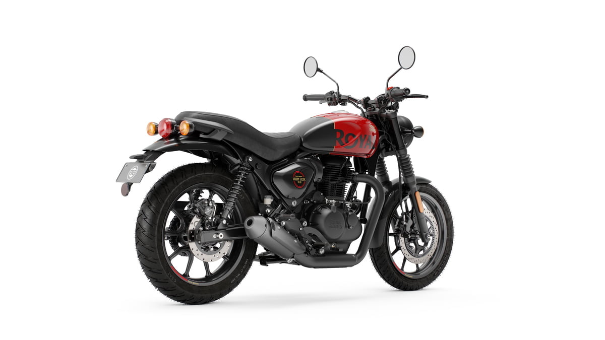Hunter 350 มีเอกลักษณ์เฉพาะในกลุ่มผลิตภัณฑ์ รอยัล เอ็นฟีลด์ โดย Hunter ถูกสร้างขึ้นบนเครื่องยนต์ตระกูล J-series ขนาด 350cc ที่ได้รับรางวัล ซึ่งผสมผสานกับแชสซี Harris Performance ที่ปรับเลื่อนได้สูง และมอบความคล่องตัวและความแข็งแกร่งทนทานเมื่อขับขี่บนถนนในเมือง พร้อมความสนุกสนานผ่อนคลายเมื่อขับขี่ตามท้องถนนที่เป็นเส้นทอดยาว