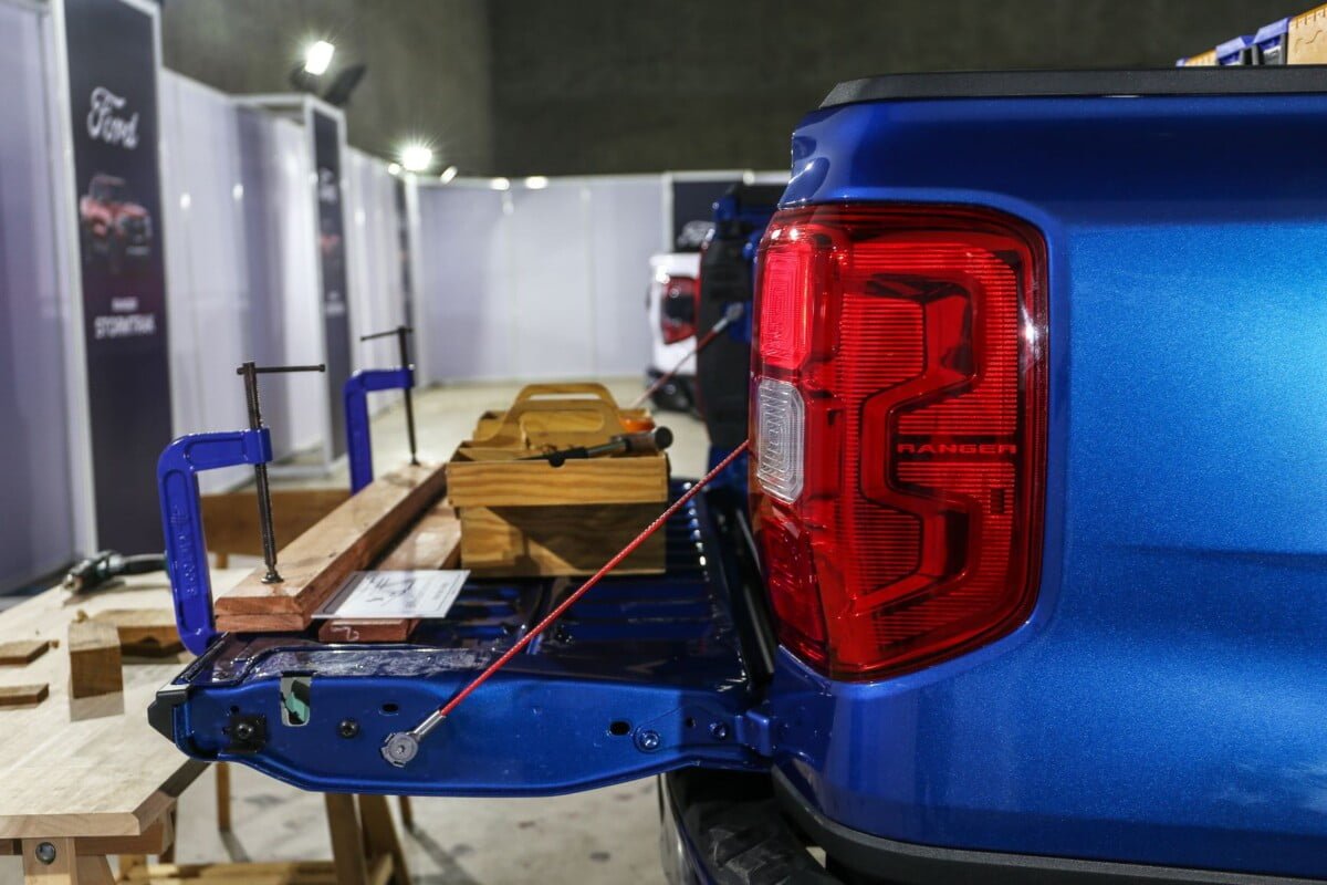เปลี่ยนกระบะท้ายเป็นพื้นที่ทำงาน กระบะท้ายของฟอร์ด เรนเจอร์ ทำหน้าที่เป็นโต๊ะทำงานเคลื่อนที่ได้ บริเวณฝาท้ายยังมีจุดยึดอุปกรณ์ช่าง 2 จุด ช่วยยึดไม้และวัสดุงานช่างอื่น ๆ ให้มั่นคง พร้อมไม้บรรทัดวัดขนาดแบบบิลท์อิน ช่วยให้ทำงานได้สะดวกยิ่งขึ้น