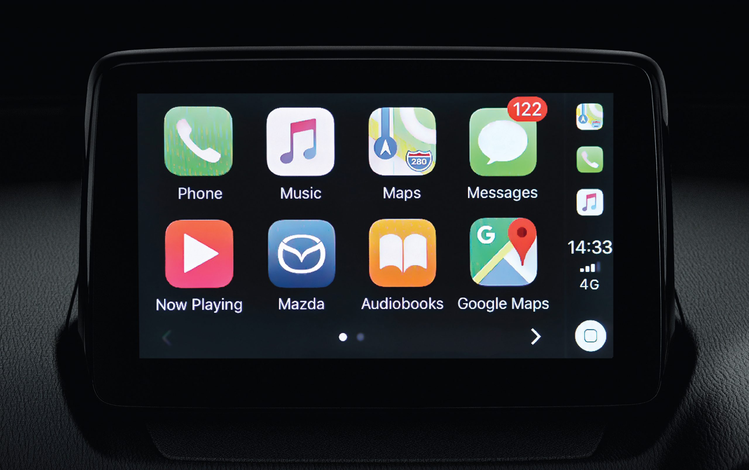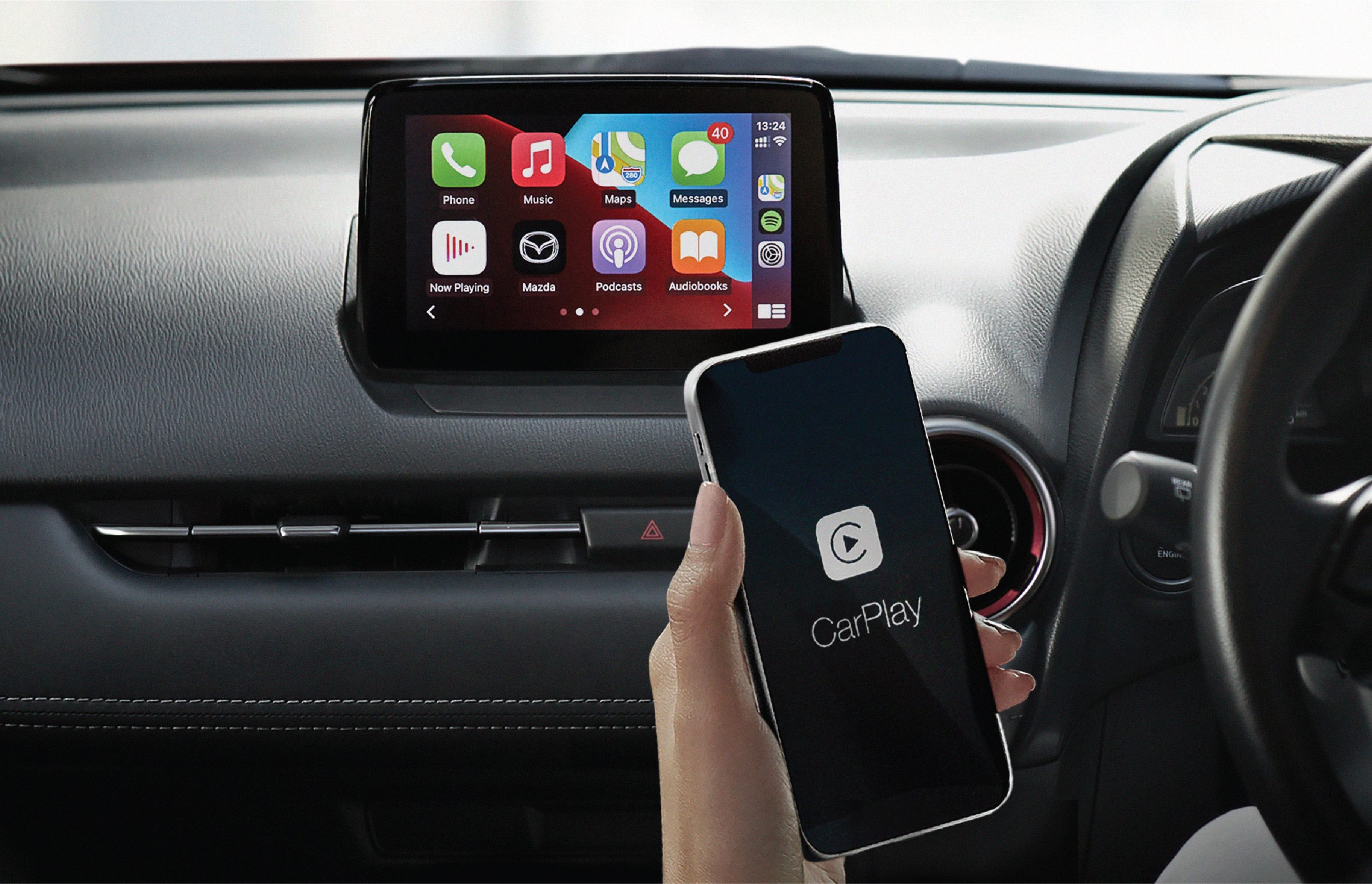 สามารถใช้งานผ่านแอพพลิเคชั่นบนสมาร์ทโฟน ด้วยระบบ Mazda Connect ที่มาพร้อม Wireless Apple CarPlay® และรองรับ Android AutoTM* ที่สามารถใช้งานฟังก์ชั่นสำคัญได้โดยแสดงข้อมูลผ่านหน้าจอสี Center Display แบบทัชสกรีน ขนาด 7 นิ้ว ควบคุมด้วยปุ่มควบคุมอัจฉริยะ Center Commander มอบความสะดวกสบายได้อย่างแท้จริง