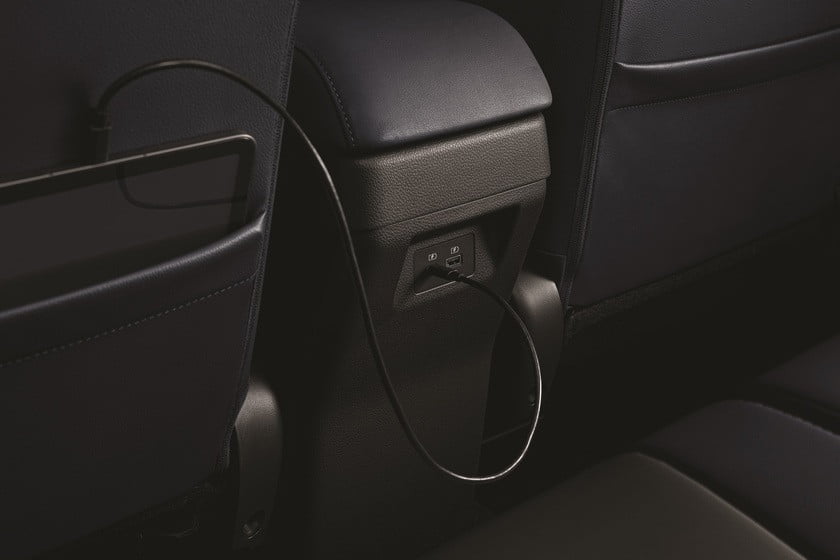- สะดวกสบายด้วยช่อง USB 2 ช่องสำหรับเบาะแถวที่สองทั้งแบบ Type-A และ Type-C พร้อมติดตั้งเพิ่มที่วางแก้วน้ำบนที่พักแขนสำหรับเบาะแถวที่สอง