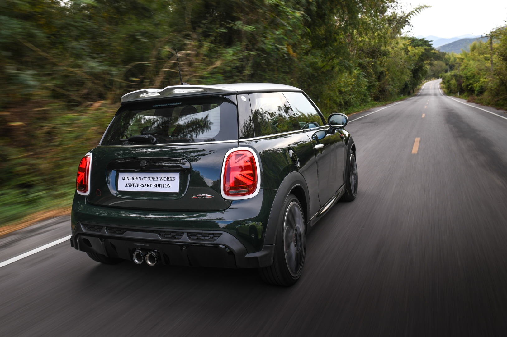 มินิ จอห์น คูเปอร์ เวิร์คส์ Anniversary Edition ใหม่ มีพละกำลังขับเคลื่อนจากขุมพลังเบนซิน 4 สูบ ควบคู่กับโครงสร้างน้ำหนักเบาและเกียร์อัตโนมัติ Steptronic Sport 8 จังหวะ ส่งกำลังสูงสุด 170 กิโลวัตต์ / 231 แรงม้า แรงบิดสูงสุด 320 นิวตันเมตร โลดแล่นจากหยุดนิ่งถึง 100 กิโลเมตรต่อชั่วโมงภายใน 6.1 วินาที สู่ความเร็วสูงสุด 246 กิโลเมตรต่อชั่วโมง