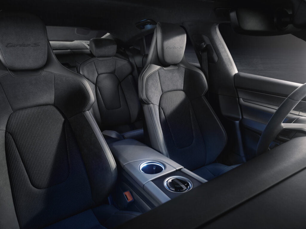 Taycan Turbo S และ Taycan Turbo นำเสนอมิติใหม่ของงานตกแต่งภายในที่ปราศจากการใช้วัสดุหนังเป็นครั้งแรก ชิ้นงานภายในประกอบด้วยนวัตกรรมวัสดุรีไซเคิลทั่วทั้งห้องโดยสาร ซึ่งล้วนแล้วแต่ตอบโจทย์แนวคิดในการพัฒนารถสปอร์ตพลังงานไฟฟ้าอย่างยั่งยืน ชิ้นส่วนเหล่านี้สามารถสั่งติดตั้งเป็นอุปกรณ์พิเศษได้ในรุ่น Taycan 4S