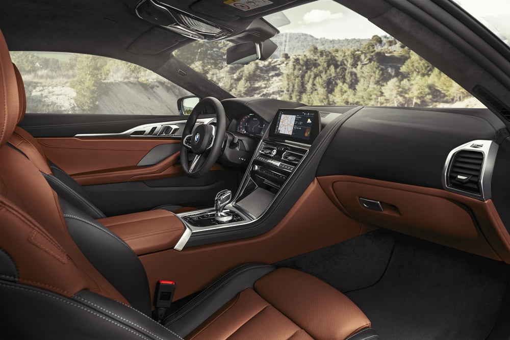 ภายในของ 8 Series ออกแบบเน้นความเรียบหรู ปุ่มควบคุมและหน้าจอกลางเยื้องมาที่ผู้ขับทำให้ใช้งานสะดวกยิ่งขึ้นในขณะขับขี่ หรูหราด้วยวัสดุหนังคุณภาพเยี่ยมพร้อมการตกแต่งอย่างประณีต มาพร้อมจอหน้าปัดดิจิตอลเต็มรูปแบบ BMW Live Cockpit Professional ขนาด 12.3 นิ้ว ระบบสาระบันเทิงหน้าจอสัมผัสขนาด 10.25 นิ้ว รองรับทั้งการสัมผัส คำสั่งเสียง การสั่งด้วยท่าทาง และปุ่มหมุน iDrive นอกจากนี้ยังมาพร้อม Head-up display เวอร์ชันปรับปรุงใหม่ที่ใหญ่กว่าเดิม 16% สามารถแสดงเป็นภาพ 3 มิติได้ และพวงมาลัยมัลติฟังก์ชันหุ้มหนังพร้อมแพดเดิลชิฟท์เป็นมาตรฐาน