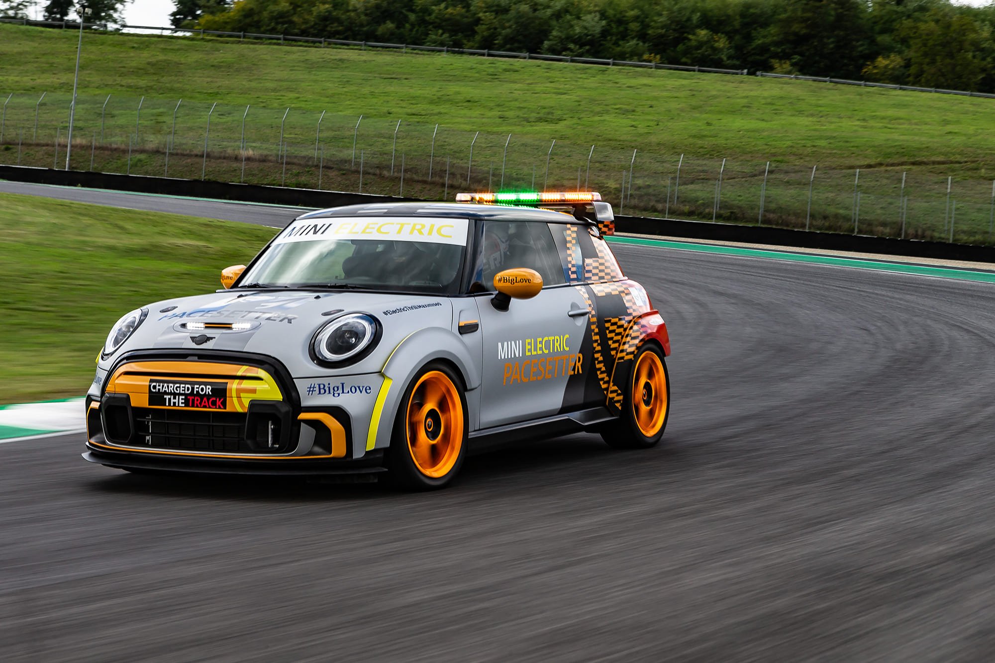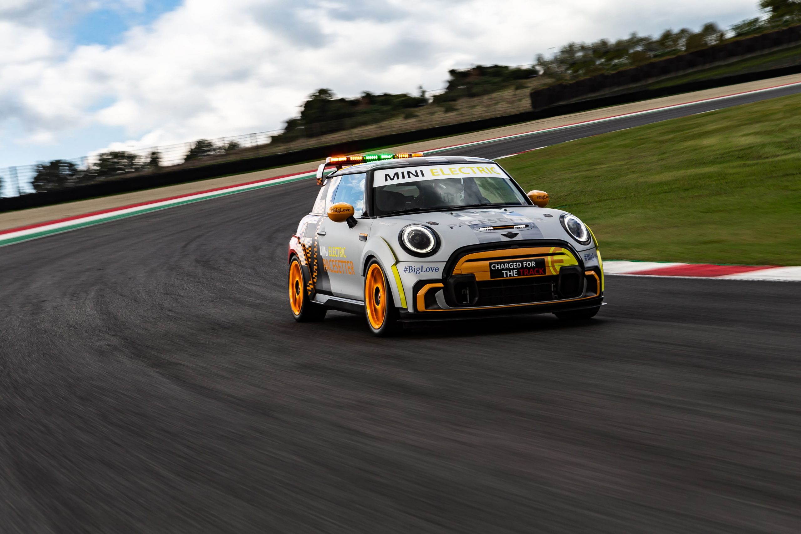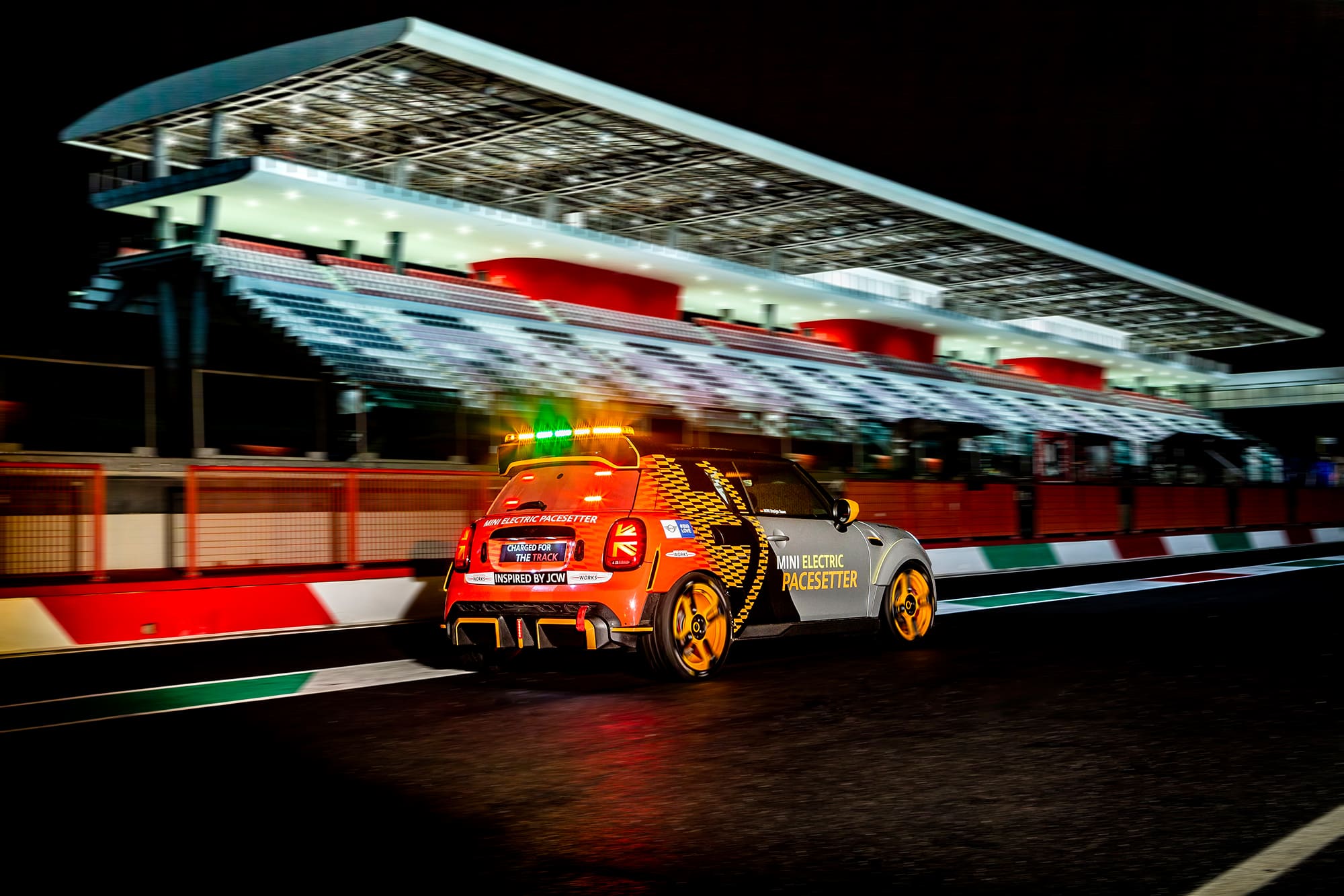เบื้องหลังรูปลักษณ์อันทรงพลังของ The MINI Electric Pacesetter inspired by JCW นั้นผ่านการคิดและใช้ความความเชี่ยวชาญของบีเอ็มดับเบิลยู มอเตอร์สปอร์ต ซึ่งการยึดมั่นในหลักการออกแบบที่ต้องรีดน้ำหนักรถเซฟตี้คาร์ให้เบาที่สุดนั้นสามารถลดน้ำหนักลงได้เหลือน้ำหนักโดยรวมประมาณ 1,230 กิโลกรัม ส่วนระบบขับเคลื่อนนั้นเป็นมาตรฐานเดียวกับรถยนต์ไฟฟ้ามินิ มอบพละกำลังที่ 135 กิโลวัตต์ / 184 แรงม้า แรงบิด 280 นิวตันเมตร ซึ่งสามารถทำอัตราเร่งจาก 0-100 กม./ชม. ได้ภายในเวลา 6.7 วินาที (รุ่นมาตรฐานอยู่ที่ 7.3 วินาที) และทำอัตราเร่ง 0-60 กม./ชม.ใน 3.6 วินาที (รุ่นมาตรฐานอยู่ที่ 3.9 วินาที) ซึ่ง The MINI Electric Pacesetter inspired by JCW แสดงให้เห็นถึงความสามารถของระบบขับเคลื่อนด้วยไฟฟ้าที่มีแรงบิดสูงพร้อมเกียร์แบบ Single-Speed ที่ทำให้ทำความเร็วได้ถึง 120 กม./ชม. ภายใน 4.3 วินาที (รุ่นมาตรฐานอยู่ที่ 4.6 วินาที)