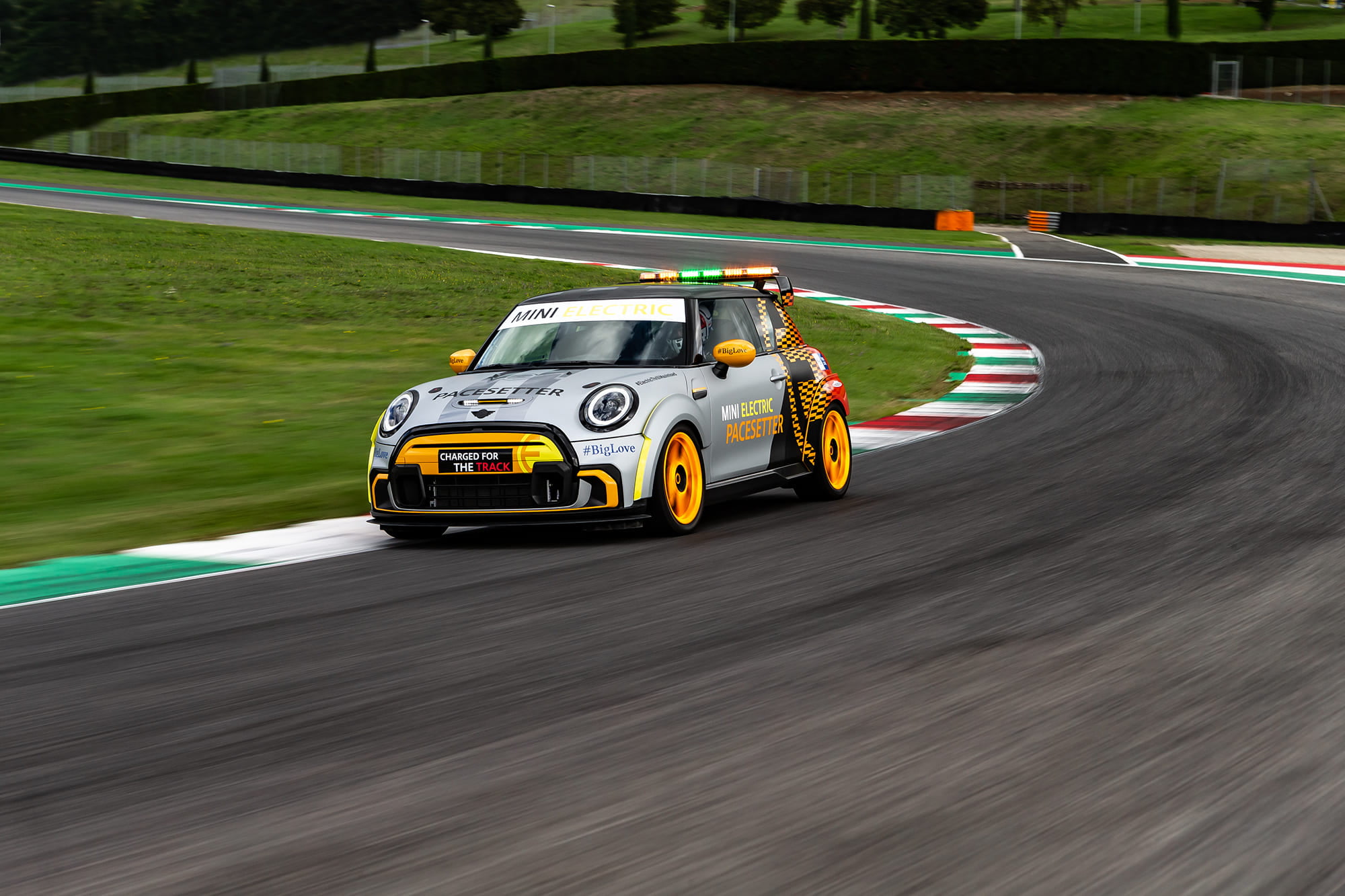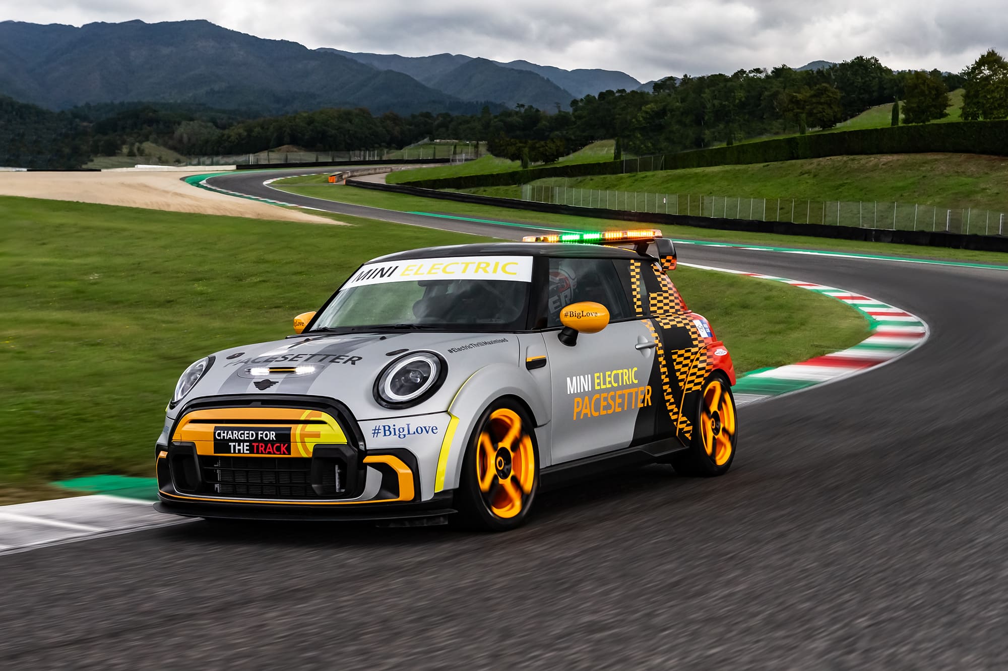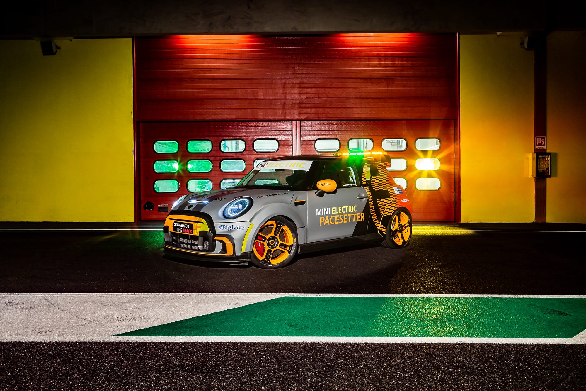 เบื้องหลังรูปลักษณ์อันทรงพลังของ The MINI Electric Pacesetter inspired by JCW นั้นผ่านการคิดและใช้ความความเชี่ยวชาญของบีเอ็มดับเบิลยู มอเตอร์สปอร์ต ซึ่งการยึดมั่นในหลักการออกแบบที่ต้องรีดน้ำหนักรถเซฟตี้คาร์ให้เบาที่สุดนั้นสามารถลดน้ำหนักลงได้เหลือน้ำหนักโดยรวมประมาณ 1,230 กิโลกรัม ส่วนระบบขับเคลื่อนนั้นเป็นมาตรฐานเดียวกับรถยนต์ไฟฟ้ามินิ มอบพละกำลังที่ 135 กิโลวัตต์ / 184 แรงม้า แรงบิด 280 นิวตันเมตร ซึ่งสามารถทำอัตราเร่งจาก 0-100 กม./ชม. ได้ภายในเวลา 6.7 วินาที (รุ่นมาตรฐานอยู่ที่ 7.3 วินาที) และทำอัตราเร่ง 0-60 กม./ชม.ใน 3.6 วินาที (รุ่นมาตรฐานอยู่ที่ 3.9 วินาที) ซึ่ง The MINI Electric Pacesetter inspired by JCW แสดงให้เห็นถึงความสามารถของระบบขับเคลื่อนด้วยไฟฟ้าที่มีแรงบิดสูงพร้อมเกียร์แบบ Single-Speed ที่ทำให้ทำความเร็วได้ถึง 120 กม./ชม. ภายใน 4.3 วินาที (รุ่นมาตรฐานอยู่ที่ 4.6 วินาที)