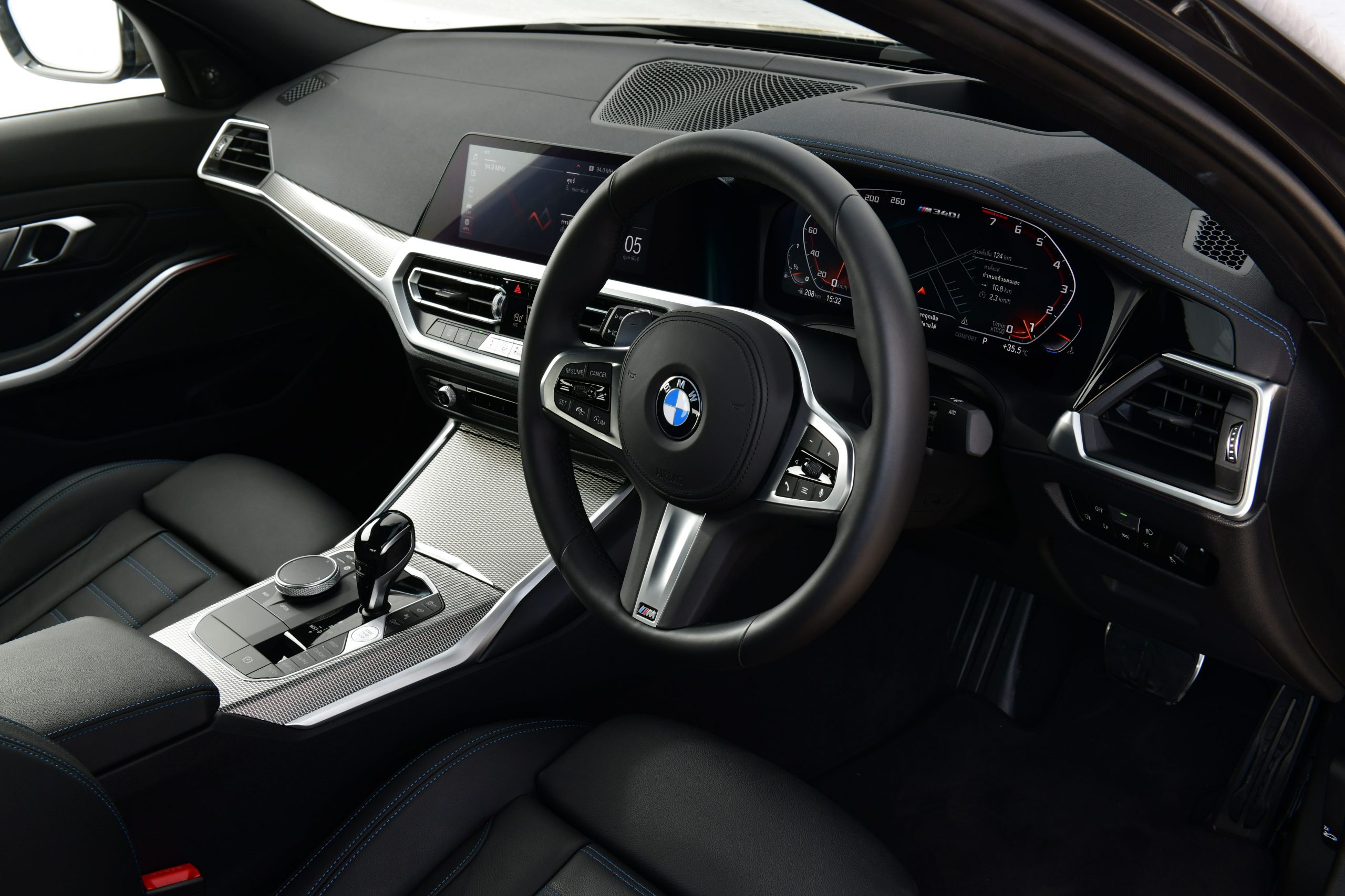 ส่วนห้องโดยสารมาพร้อมกับเบาะนั่งตอนหน้าแบบสปอร์ตบุลาย M คอนโซลด้านบนบุด้วยหนัง Sensatec เพดานหลังคาภายในสี Anthracite และพวงมาลัยหุ้มหนังดีไซน์ M Sport พร้อมแป้นเปลี่ยนเกียร์ ภายในตกแต่งด้วยอะลูมิเนียมลาย Tetragon เติมเต็มบรรยากาศเหนือระดับอันเป็นเอกลักษณ์ของบีเอ็มดับเบิลยู นอกจากนี้ยังโดดเด่นด้วยดีไซน์เฉพาะตัวที่บ่งบอกชื่อรุ่น M340i xDrive บริเวณขอบประตูหน้า พร้อมปรากฎโลโก้ M340i บนแผงหน้าปัดดิจิทัล เทคโนโลยีที่ล้ำสมัยอื่น ๆ ในบีเอ็มดับเบิลยู M340i xDrive ยังรวมถึงระบบ BMW Live Cockpit Professional ที่แสดงผลบนหน้าจอดิจิทัล และยังมาพร้อมระบบ BMW Head-up Display และหลังคากระจกเปิดปิดด้วยระบบไฟฟ้า