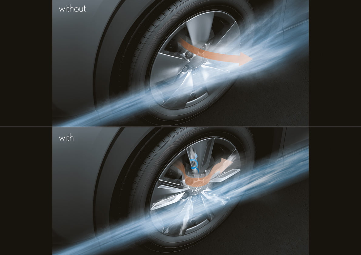 - ระบบเบรกแบบป้องกันล้อล็อค (ABS) พร้อมระบบกระจายแรงเบรกไฟฟ้า (EBD)