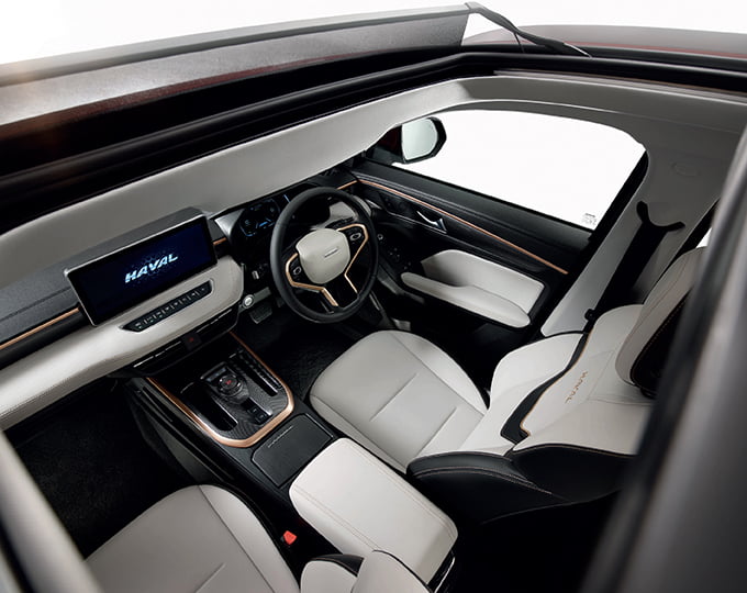 ดีไซน์ภายในรังสรรค์ขึ้นภายใต้แนวคิด Future Intelligent Cockpit ให้ความรู้สึกกว้างขวางและสะดวกสบาย ที่อัดแน่นด้วยเทคโนโลยีที่คัดสรรมาอย่างพิถีพิถัน เพื่อมอบประสบการณ์การขับขี่เหนือระดับให้กับผู้ใช้งาน ไม่ว่าจะเป็ การเชื่อมต่อของ 3 หน้าจออัจฉริยะ ทั้งหน้าจอหลักตรงกลางแบบ Touch Screen Audio Display ความละเอียดสูง ขนาด 12.3 นิ้ว ที่รองรับ Apple Carplay MP3 JOOX และระบบนำทางต่อด้วยหน้าจอ Multi Information Display ความละเอียดสูงขนาด 7 นิ้ว และหน้าจอ Head-up Display ที่แสดงข้อมูลการขับขี่บนกระจกบังลมด้านหน้า นอกจากนี้ ยังครบครันด้วยสิ่งอำนวยความสะดวกสบายมากมาย อาทิ เบาะนั่งไฟฟ้าด้านหน้าฝั่งคนขับที่ปรับได้ถึง 6 ทิศทาง ลำโพง 6 ตัว ระบบปรับอากาศอัตโนมัติแยกซ้าย-ขวาและระบบช่องแอร์ด้านหลัง ระบบกรองอากาศ PM2.5 ที่ชาร์จแบบไร้สาย (Wireless Charger) ชุดเกียร์ไฟฟ้า Electronic Shifter กุญแจ Smart Key และระบบ Push Start รวมไปถึงพื้นที่ห้องโดยสารอเนกประสงค์ที่สามารถปรับเปลี่ยนเพื่อรองรับการใช้งานได้อย่างหลากหลาย ซึ่งเบาะที่นั่งด้านหลังสามารถพับลงได้เพื่อเพิ่มพื้นที่ในการบรรทุกสัมภาระได้สูงสุดถึง 1,069 ลิตร