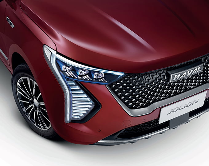 All New HAVAL JOLION Hybrid SUV ยังมาพร้อมรูปลักษณ์ภายนอกอันโฉบเฉี่ยวสะท้อนถึงสุนทรียภาพแห่งอนาคต โดดเด่นด้วยไฟหน้า LED เต็มรูปแบบกับระบบ Daytime Running Light และระบบ Welcome Light เมื่อปลดล็อค พร้อมด้วยไฟส่องสว่างหลังดับเครื่องยนต์ Follow Me Home ร่วมด้วยกระจังหน้า Star Matrix สีดำ-เทา หลังคาพาโนรามิคซันรูปและไฟท้าย LED ที่ให้มาพร้อมไฟเบรกดวงที่สามและไฟตัดหมอกหลังและล้ออัลลอยดีไซน์สปอร์ตทูโทนขนาด 18 นิ้ว ให้ผู้ขับขี่รู้สึกเสมือนกำลังโลดแล่นไปกับราชสีห์ที่กำลังเปล่งเสียงคำรามอย่างมีความสุข ซึ่งเป็นที่มาของชื่อรุ่น JOLION (Joy + Lion)