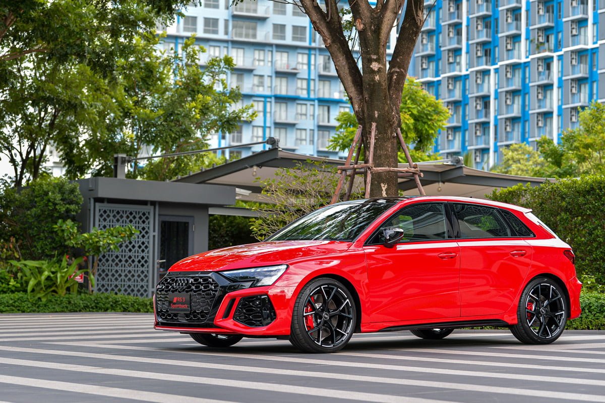 The New Audi RS3 Sportback รถซูเปอร์คาร์ไซส์คอมแพค เร้าใจเหมือนอยู่ในสนามแข่งและตอบโจทย์การใช้งานได้ทุกวัน นับเป็นการเปิดตัวรถยนต์สมรรถนะสูงรุ่นที่ 9 ของ อาวดี้ ประเทศไทย เจเนอเรชั่นใหม่ พร้อมมอบประสบการณ์ขับขี่อันน่าตื่นเต้นให้กับแฟนๆ RS ดีไซน์ภายนอกโฉบเฉี่ยว สปอร์ตสุดๆ ได้รับแรงบันดาลใจจากมอเตอร์สปอร์ต สมรรถนะอันโดดเด่น ดุดัน The New Audi RS3 Sportback