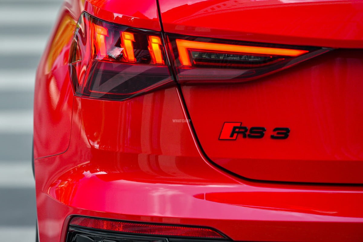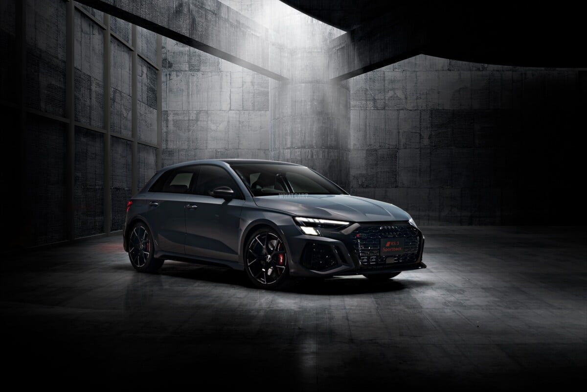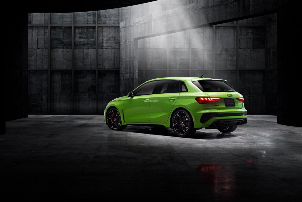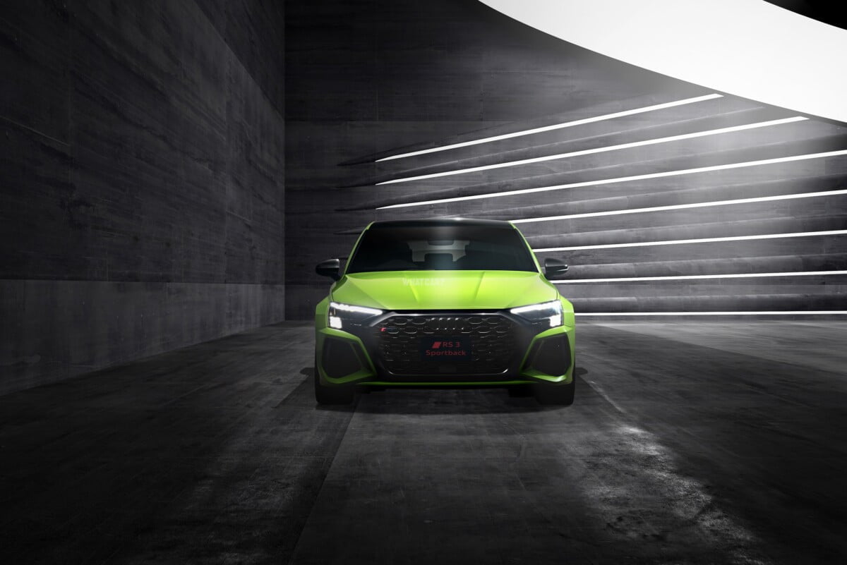 การออกแบบ The New Audi RS3 Sportback เน้นให้รถมีความสปอร์ตและดุดันมากยิ่งขึ้น กันชนหน้าแบบ RS และช่องดักอากาศขนาดใหญ่ขึ้น มาพร้อมกระจังหน้าลายรังผึ้ง อันเป็นเอกลักษณ์ของตระกูล RS พร้อมชุดแต่งภายนอกแบบ Glossy black และ Audi Ring และป้ายชื่อรุ่นสี Glossy black ทำให้รถสปอร์ตคอมแพ็คคันนี้ดูดุดันมากขึ้น อุปกรณ์มาตรฐาน ไฟหน้า Matrix LED และไฟท้าย LED แบบ Dynamic ซึ่งจุดเด่นของไฟหน้าจะมี digital daytime running light แบบพิกเซลล์ขนาด 3×5 ที่มาพร้อมกับเอฟเฟกต์ light staging แบบ RS3-signature ด้านฝั่งคนขับ เมื่อปลดล็อครถได้ ส่วน Daytime running light จะแสดงในรูปแบบของธงตราหมากรุก ช่องระบายอากาศบริเวณซุ้มล้อหน้าและซุ้มล้อหน้าที่กว้างขึ้นกว่ารุ่นเดิม 33 มิลลิเมตร และซุ้มล้อหลังกว้างขึ้น 10 มิลลิเมตร ทำให้รถดูดุดันมากยิ่งขึ้น ล้อขนาด 19 นิ้ว ลาย Y spoke ปั้มลาย RS และคาลิปเปอร์เบรกสีแดงปั้มลาย RS ทำให้รถดูสปอร์ตมากยิ่งขึ้น