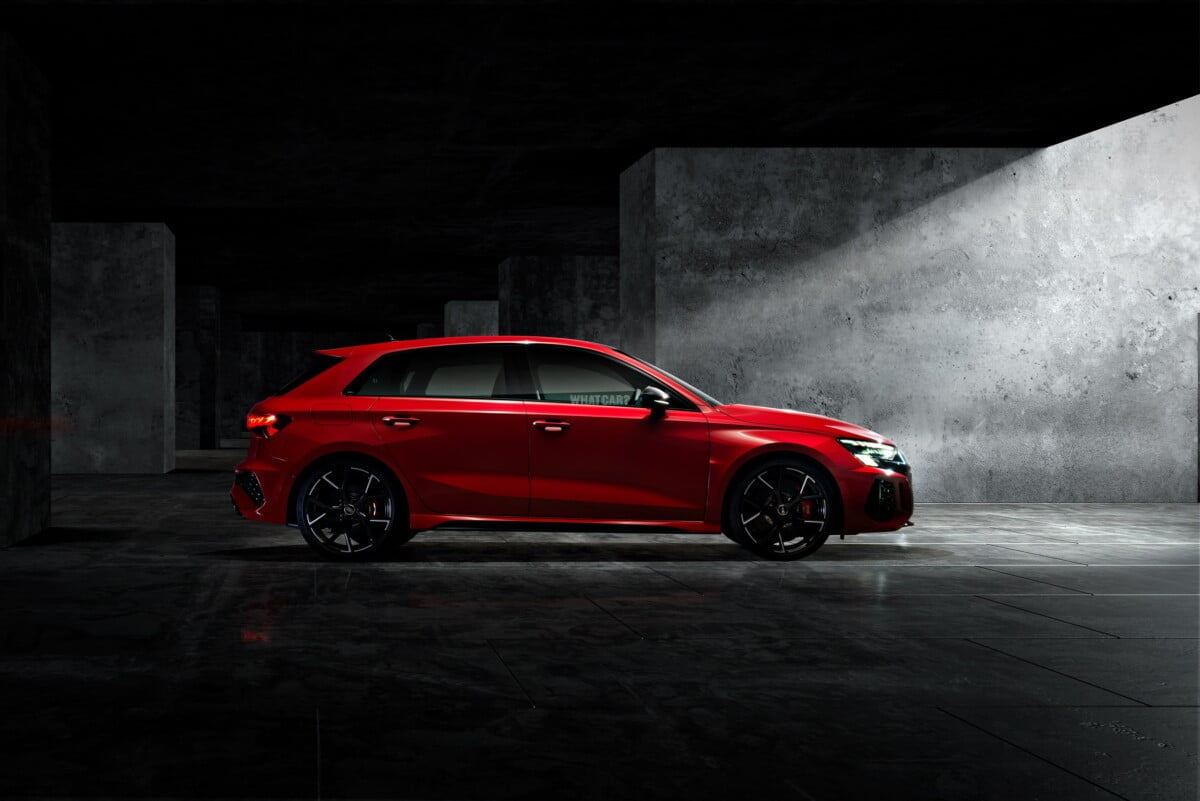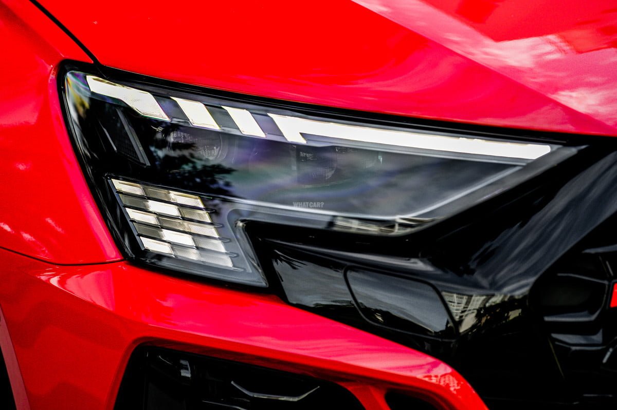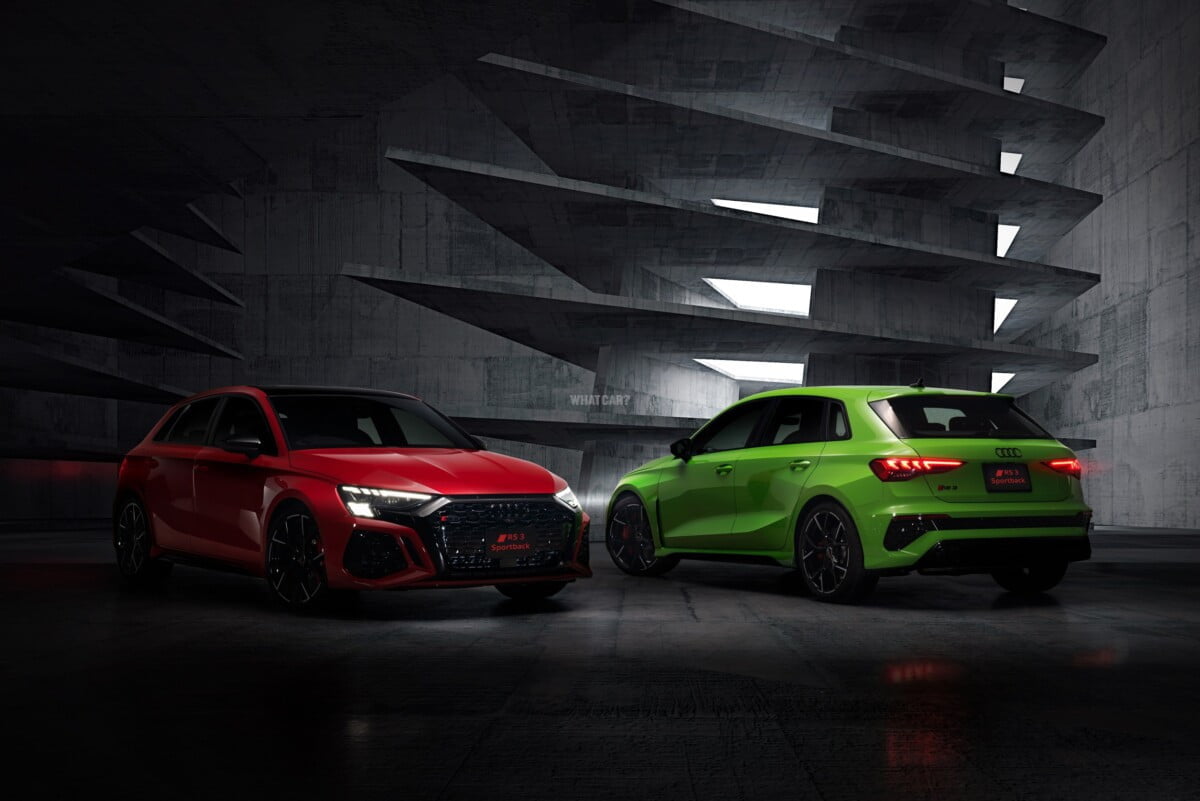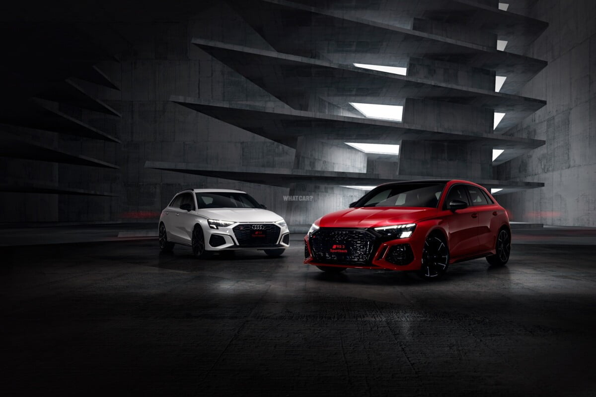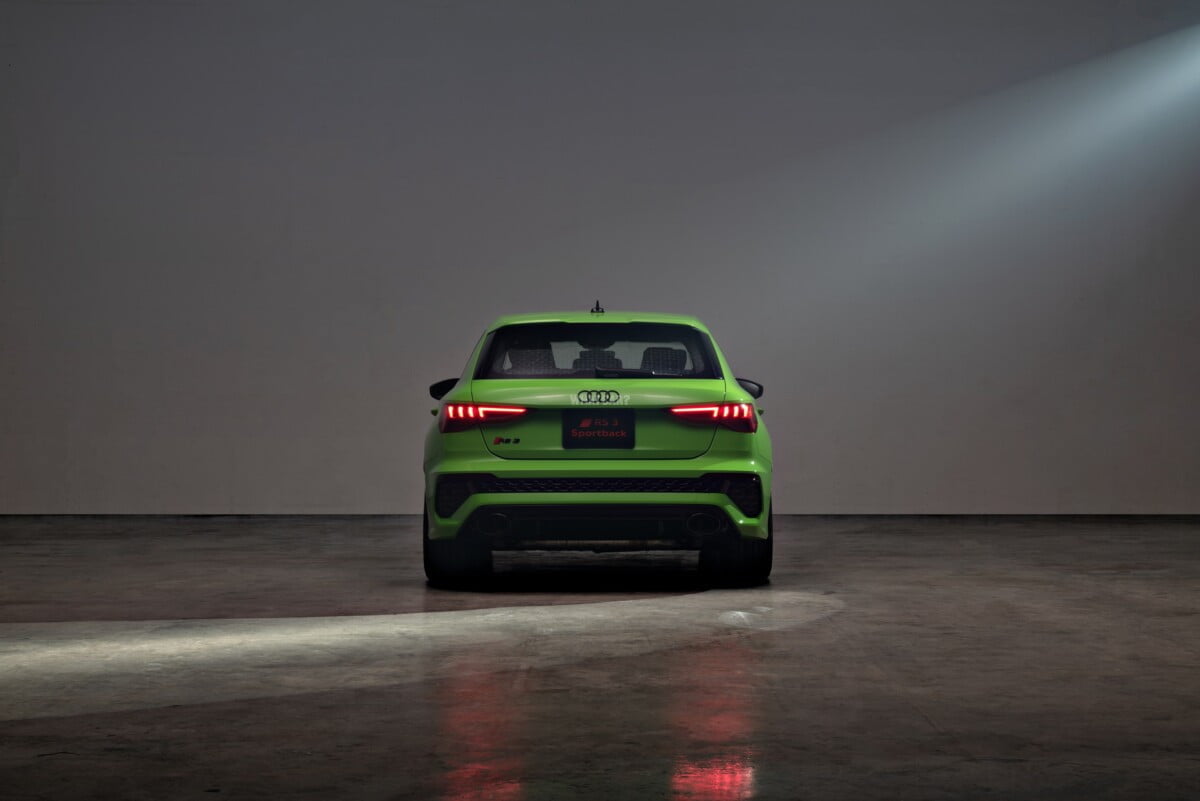 การออกแบบ The New Audi RS3 Sportback เน้นให้รถมีความสปอร์ตและดุดันมากยิ่งขึ้น กันชนหน้าแบบ RS และช่องดักอากาศขนาดใหญ่ขึ้น มาพร้อมกระจังหน้าลายรังผึ้ง อันเป็นเอกลักษณ์ของตระกูล RS พร้อมชุดแต่งภายนอกแบบ Glossy black และ Audi Ring และป้ายชื่อรุ่นสี Glossy black ทำให้รถสปอร์ตคอมแพ็คคันนี้ดูดุดันมากขึ้น อุปกรณ์มาตรฐาน ไฟหน้า Matrix LED และไฟท้าย LED แบบ Dynamic ซึ่งจุดเด่นของไฟหน้าจะมี digital daytime running light แบบพิกเซลล์ขนาด 3×5 ที่มาพร้อมกับเอฟเฟกต์ light staging แบบ RS3-signature ด้านฝั่งคนขับ เมื่อปลดล็อครถได้ ส่วน Daytime running light จะแสดงในรูปแบบของธงตราหมากรุก ช่องระบายอากาศบริเวณซุ้มล้อหน้าและซุ้มล้อหน้าที่กว้างขึ้นกว่ารุ่นเดิม 33 มิลลิเมตร และซุ้มล้อหลังกว้างขึ้น 10 มิลลิเมตร ทำให้รถดูดุดันมากยิ่งขึ้น ล้อขนาด 19 นิ้ว ลาย Y spoke ปั้มลาย RS และคาลิปเปอร์เบรกสีแดงปั้มลาย RS ทำให้รถดูสปอร์ตมากยิ่งขึ้น