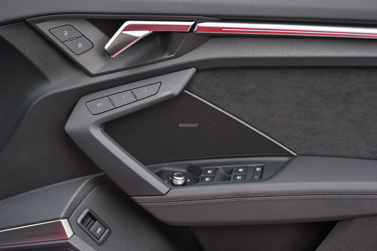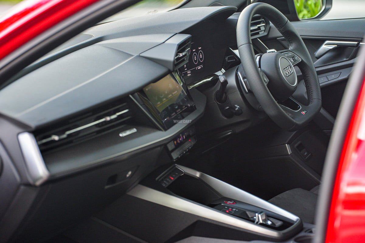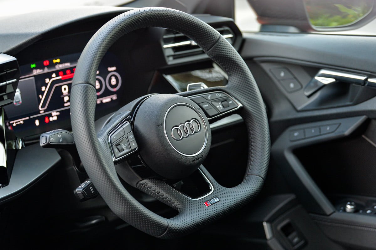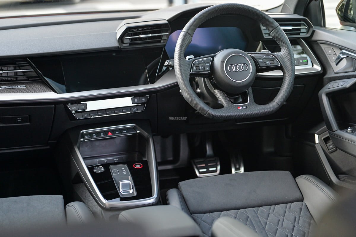 The New Audi RS3 Sportback ใช้วัสดุตกแต่งภายในห้องโดยสาร ลาย Carbon Atlas Structure และมาพร้อมไฟเรื่องแสง นอกจากนี้มีพวงมาลัยท้ายตัดมัลติฟังชัน สไตล์ RS sport หุ้มหนังพร้อม paddle shift และยังมีปุ่มปรับโหมด RS performance บนพวงมาลัยฝั่งด้านขวาเพื่อให้ง่ายต่อการปรับโหมด โดยไม่ต้องเอามือออกจากพวงมาลัยและมีเบาะหน้าแบบ RS sport stitching ลาย diamond cut ปรับด้วยไฟฟ้าพร้อมระบบปรับดันหลังไฟฟ้า Lumbar Support อีกทั้งมีระบบบันทึกความจำตำแหน่ง Memory Seat และเบาะหลังหุ้มหนัง Dinamica microfibre/synthetic โดยที่เบาะนั่งด้านหลังสามารถแยกพับ 40 : 20 : 40 และพับเรียบได้ นอกจากนี้มีคันเกียร์แบบ Electronic e-Shifter มาพร้อมกระจกมองหลัง แบบปรับลดแสงอัตโนมัติ ดีไซน์แบบไร้กรอบ และมีระบบปรับอากาศ แบบอัตโนมัติ แยกอิสระ 3-Zones อีกด้วย