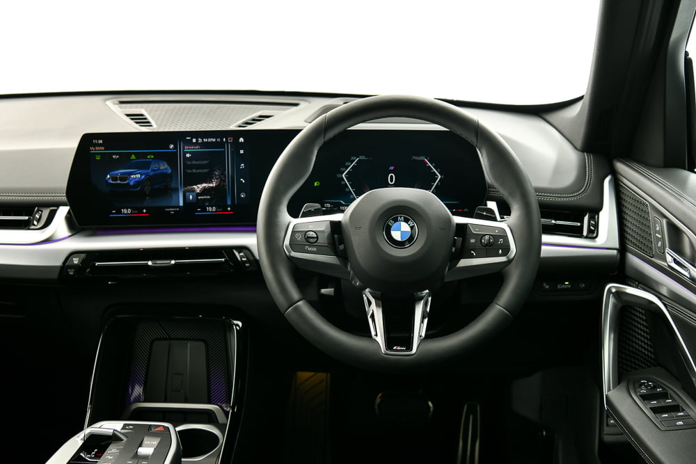 ภายในห้องโดยสารของบีเอ็มดับเบิลยู X1 sDrive20i M Sport ใหม่ ให้ความรู้สึกที่ไม่เหมือนใครตามแบบฉบับรถยนต์หรูด้วยพวงมาลัยหุ้มหนังดีไซน์ M หลังคาภายในดีไซน์ M สี Anthracite และภายในตกแต่งด้วยอะลูมิเนียมลาย ‘Mesheffect’