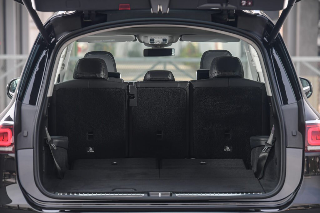 ที่นั่งแถว 3 เป็นที่นั่งแบบ full-size รองรับผู้โดยสารที่มีส่วนสูงได้ถึง 194 เซนติเมตร พร้อมระบบ EASY-ENTRY ให้เบาะและพนักพิงของที่นั่งแถว 2 สามารถพับขึ้นด้วยระบบไฟฟ้า ทั้งหมดนี้ เบาะที่นั่งแถวที่ 2 และ 3 สามารถพับได้อย่างอิสระ เพื่อรองรับการใช้งานที่หลากหลายและเพิ่มพื้นที่ความจุสำหรับเก็บสัมภาระได้สูงสุดถึง 2,400 ลิตร