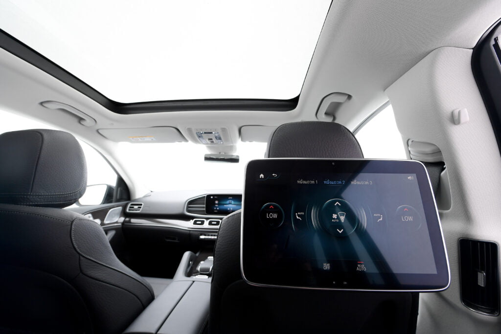ด้านสาระบันเทิงเมอร์เซเดส-เบนซ์ ติดตั้งหน้าจอสำหรับผู้โดยสารแถวที่ 2 เพื่อความบันเทิงแบบ MBUX Rear Seat Entertainment จำนวน 2 จอ ขนาด 11.6 นิ้ว พร้อมระบบควบคุมหน้าจอแบบสัมผัส เพลิดเพลินตลอดการเดินทางด้วยหูฟังแบบ wireless head sets