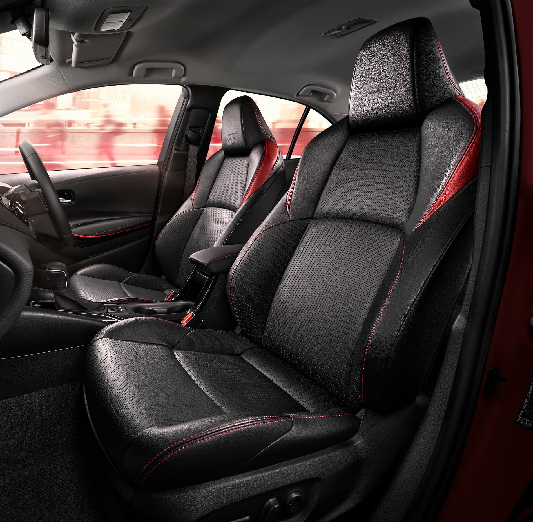 - เบาะหนังคู่หน้าสีดำตกแต่งด้วยสีแดงดีไซน์สปอร์ตพร้อมโลโก้ GR