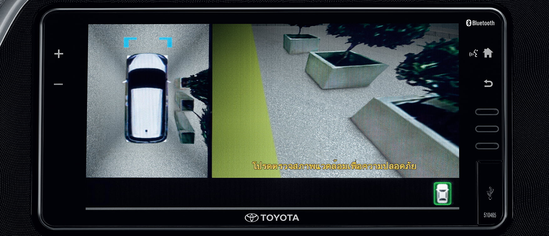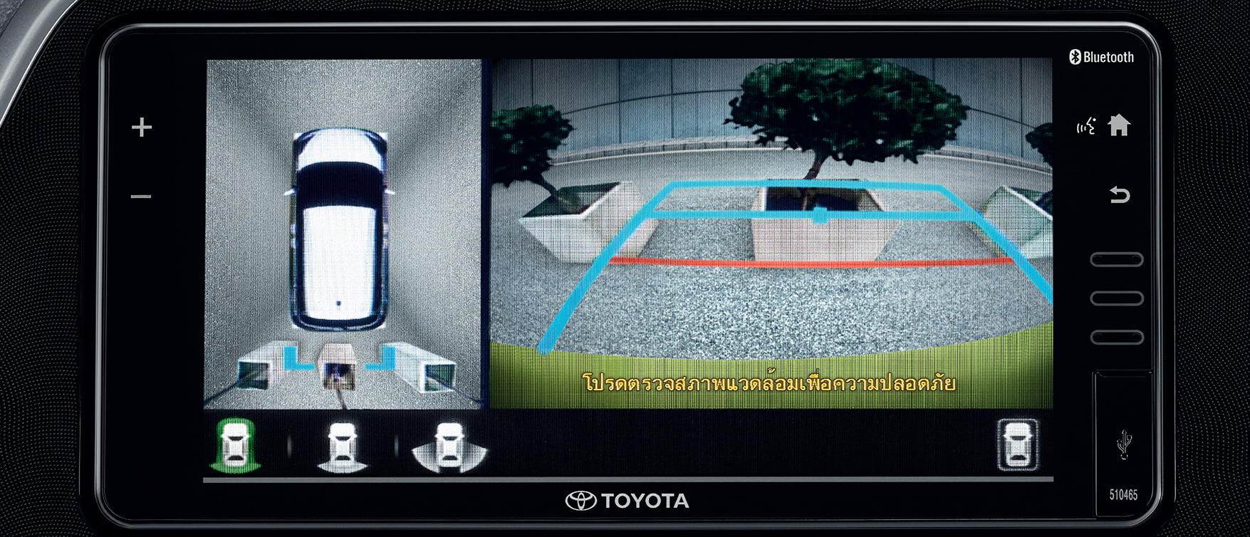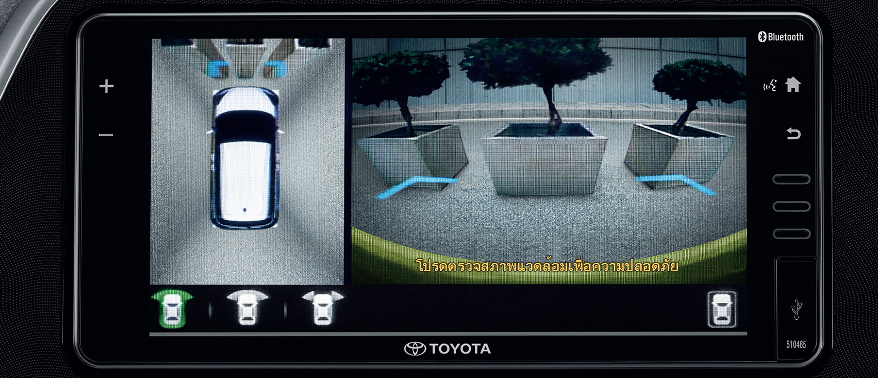 กล้องหน้า ติดตั้งบริเวณกระจังหน้า แสดงภาพด้านหน้าตัวรถ เมื่อเข้าโหมดเกียร์ P/N/D* (PVM_P/N/D mode) มาพร้อมกล้องข้างซ้าย/ขวา ติดตั้งบริเวณกระจกมองข้าง… แสดงภาพด้านข้าง เมื่อเปิดสัญญาณไฟเลี้ยวซ้าย/ขวา (PVM_Turn signal mode) ช่วยเพิ่มความปลอดภัยขณะเปลี่ยนเลนส์ และกล้องหลัง ติดตั้งบริเวณประตูท้ายรถ แสดงภาพด้านหลังอัตโนมัติ พร้อมเส้นกะระยะ เพื่อช่วยให้การถอยจอดง่ายดายยิ่งขึ้น เมื่อเข้าโหมดเกียร์ R (PVM_R mode