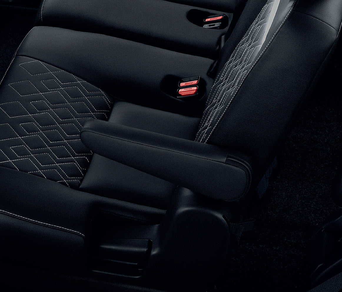 ภายในมาพร้อมเบาะหนังและวัสดุกึ่งสังเคราะห์ (สีดำ-เทา) ดีไซน์ใหม่ สปอร์ต ทันสมัย กว้างขวางตอบโจทย์ทุกการใช้งาน และยังมีพวงมาลัยไฟฟ้าพร้อมปุ่มควบคุมเครื่องเสียงและ MID อีกทั้งสามารถปรับเปลี่ยนตำแหน่งเบาะนั่งด้านหลังได้หลายรูปแบบ ได้แก่