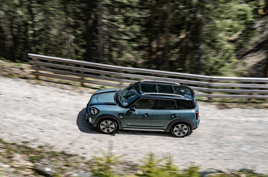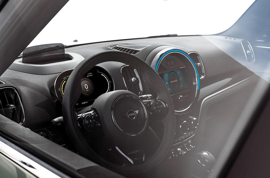 รุ่นปลั๊กอินไฮบริด Cooper S E All4 217 แรงม้า ประกอบด้วยเครื่องเบนซิน 3 สูบ ทำงานผสานกับมอเตอร์ไฟฟ้า มันประหยัดถึง 58.7 กม./ลิตร จากการทดสอบอย่างเป็นทางการ และปล่อยคาร์บอนไดออกไซด์ต่ำเพียง 40 กรัม/กม. มันวิ่งด้วยพลังงานไฟฟ้าล้วนได้ไกลถึง 60 กม. มาพร้อมระบบขับเคลื่อนสี่ล้อ All4 และภายในตกแต่งด้วยชิ้นส่วนสีดำ Piano black เป็นมาตรฐาน