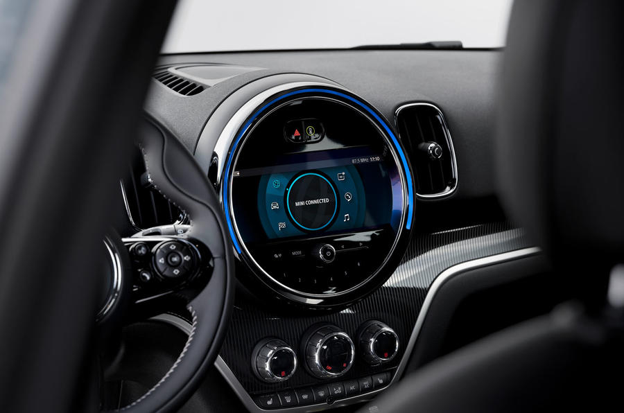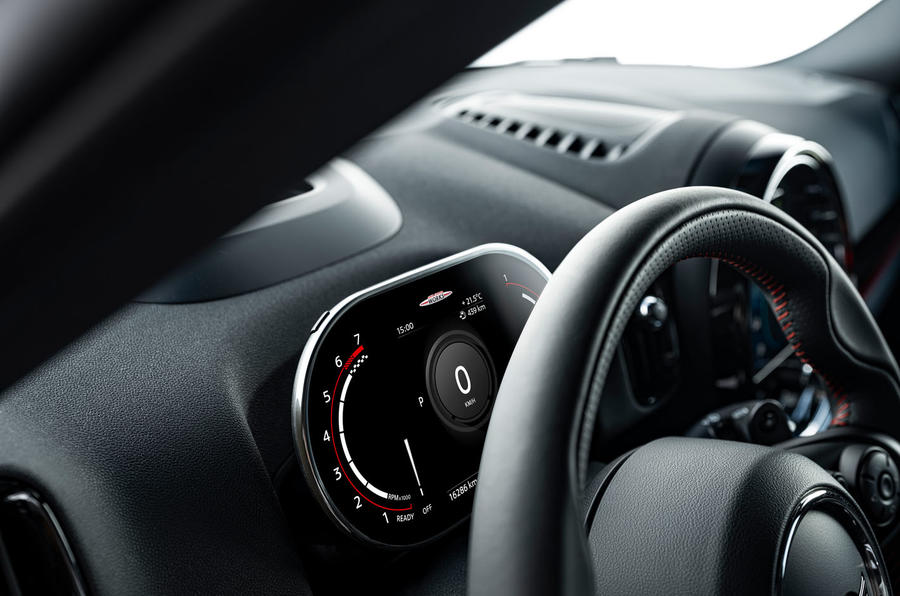ภายในของ Countryman ใหม่มีการปรับปรุงหลายจุด เริ่มที่จอน้าปัดดิจิตอลดีไซน์ใหม่แบบเดียวกับของ Mini Electric ทำให้มันดูทันสมัยขึ้นอย่างมาก หน้าจอสัมผัสกลางขนาด 8.8 นิ้วมีการปรับในส่วนของปุ่มควบคุมเป็นสีดำเงา Piano black และยังมาพร้อมระบบนำทาง Navigation