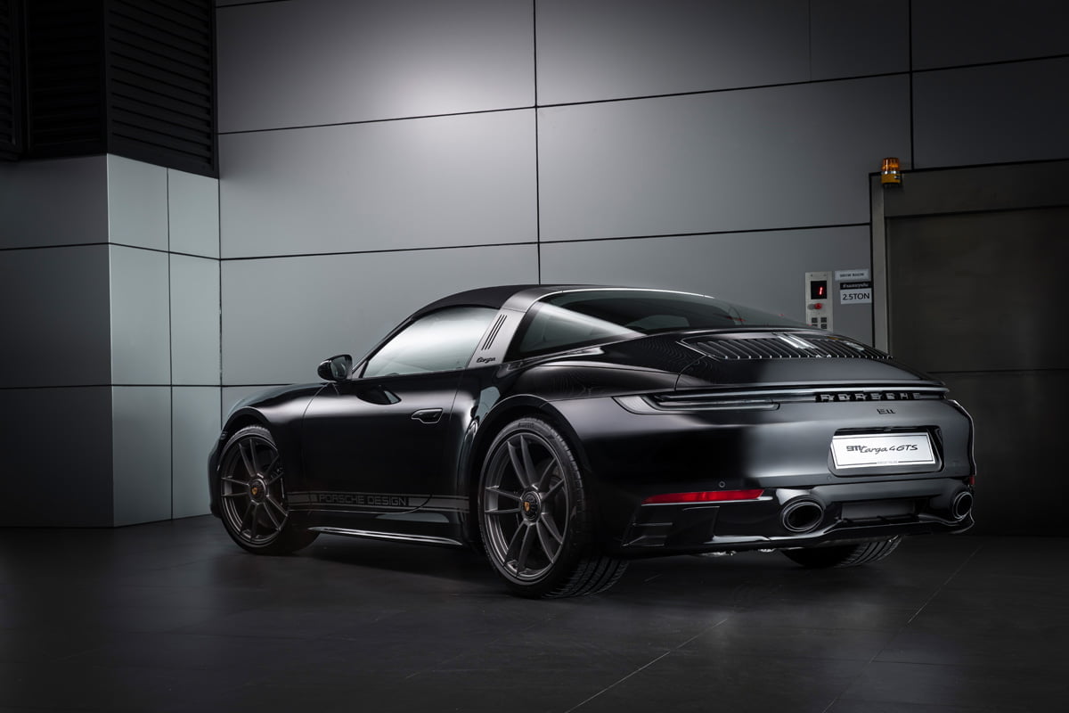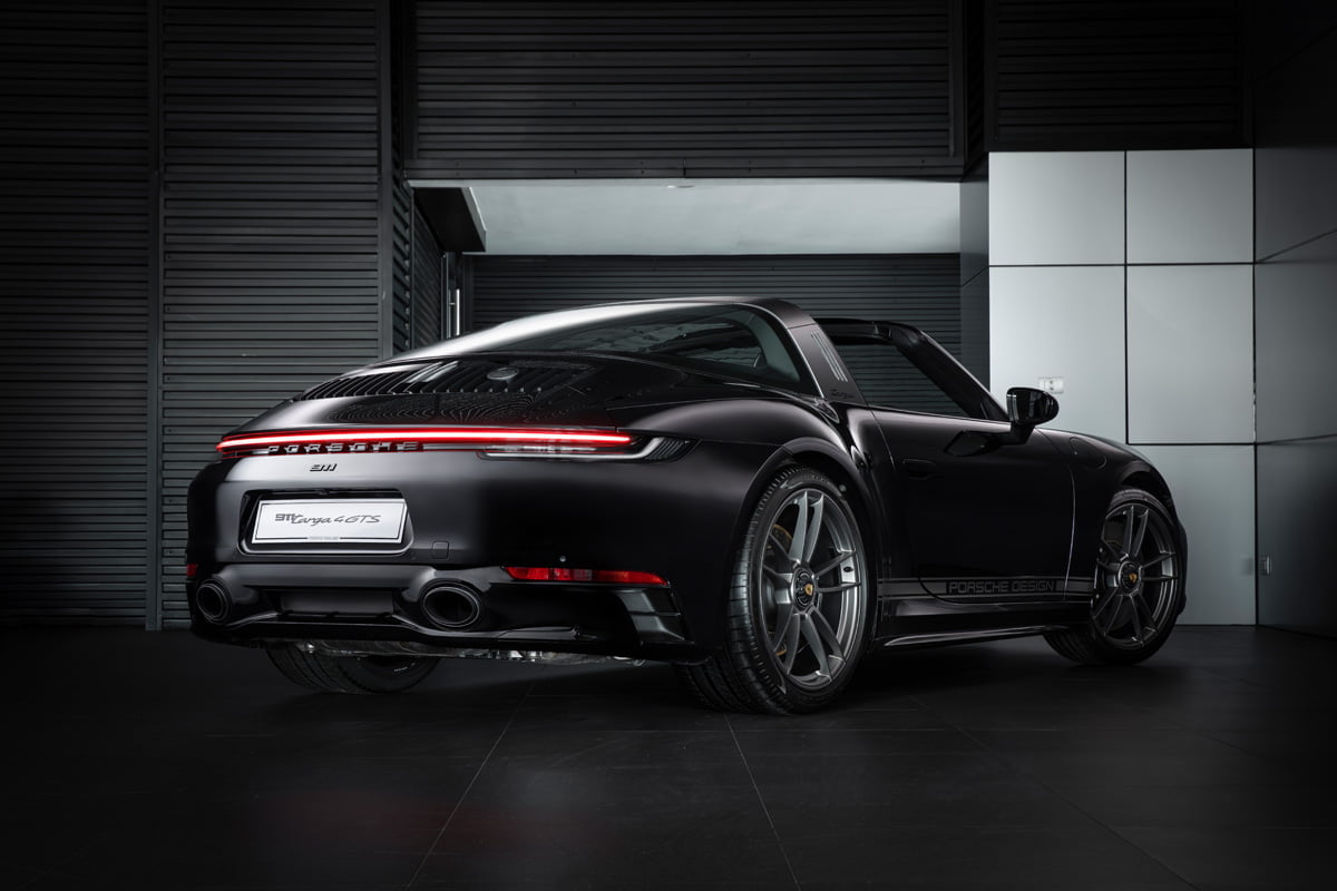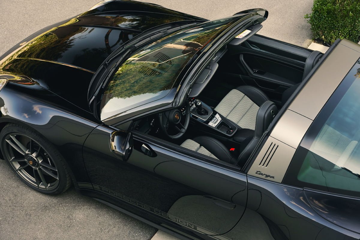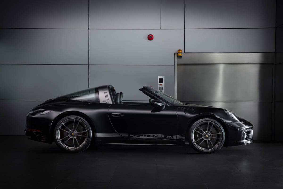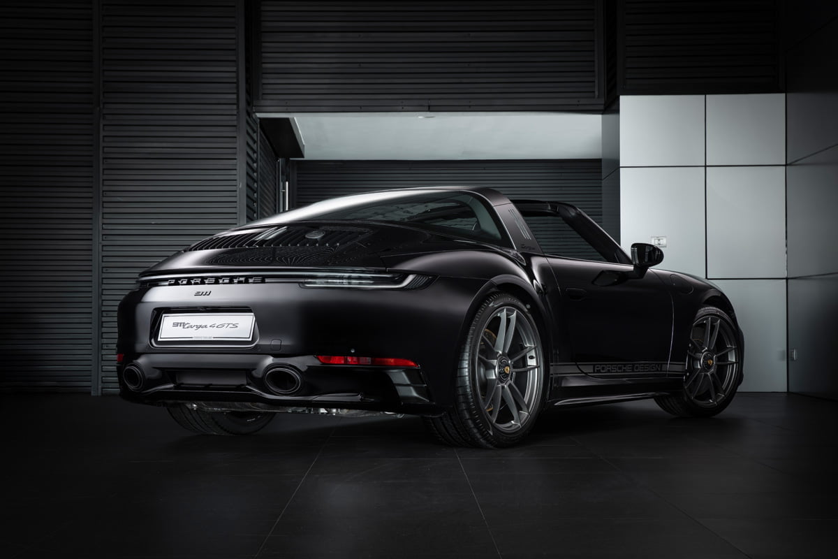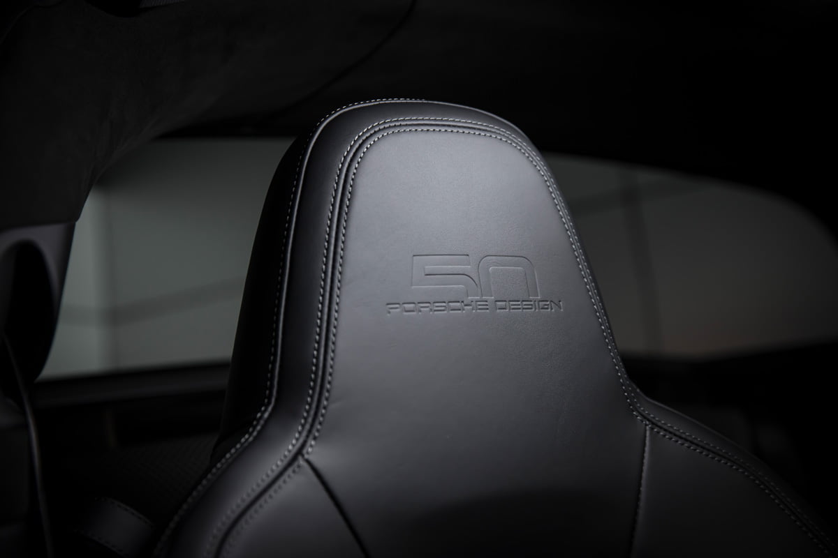 ปอร์เช่ 911 Targa 4 GTS Edition 50 Years Porsche Design มาพร้อมตัวถังภายนอกสีดำ หรือสี Jet Black Metallic ที่สง่างาม ทรงพลัง เพื่อสะท้อนภาพลักษณ์ของแบรนด์ Porsche Design (ปอร์เช่ ดีไซน์) ได้อย่างแท้จริงโดย Roland Heiler กรรมการผู้จัดการ และหัวหน้าทีมออกแบบของ Studio F.A. Porsche ใน Zell am See ได้กล่าวเอาไว้ว่า “สีดำ คือสีที่ถูกนำมาใช้ในช่วงแรกของการผลิตนาฬิกาข้อมือรุ่น Chronograph I จากแบรนด์ปอร์เช่ ดีไซน์ (Porsche Design) และนั่นคือเหตุผลที่เราเลือกใช้เฉดสีดำสำหรับรถสปอร์ตลิมิเต็ด อิดิชั่น (limited-edition) ของเรารุ่นนี้ พร้อมกับชิ้นงานตกแต่งแพลทตินั่ม (Platinum) อีกทั้งสีดำช่วยเสริมและยกระดับความดุดันให้แก่ตัวถังภายนอก เหมือนกับการตกแต่งด้วยโครเมียมในแบบที่เคยใช้มา”