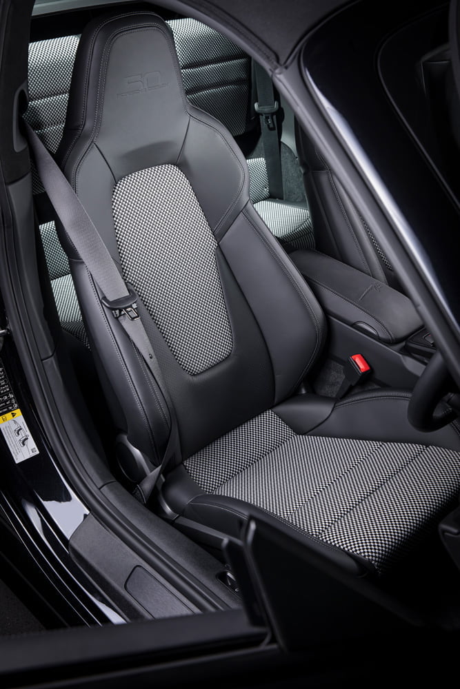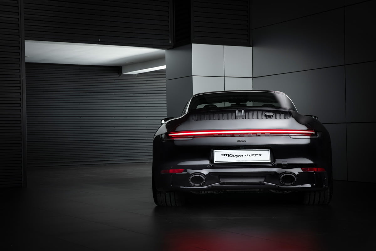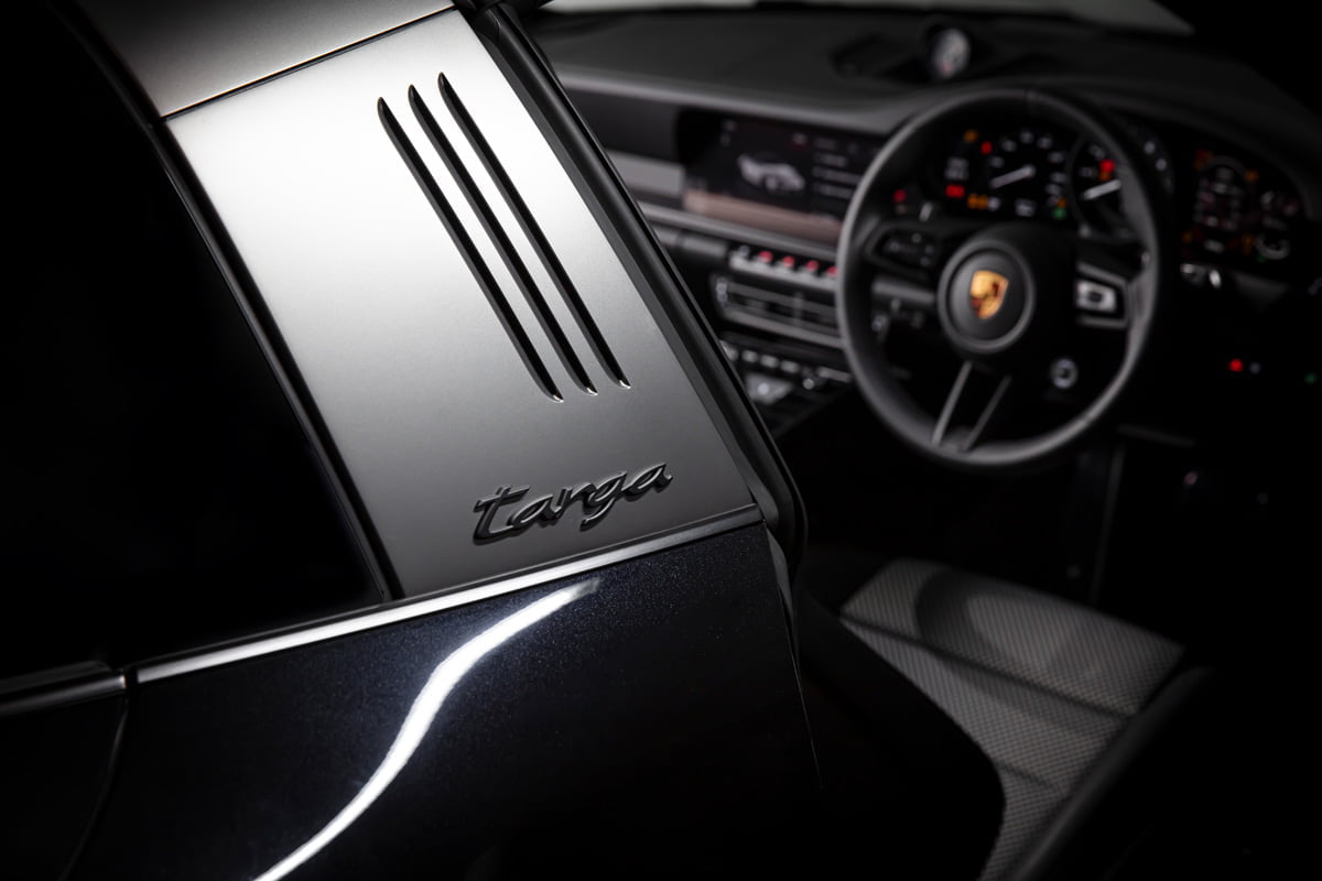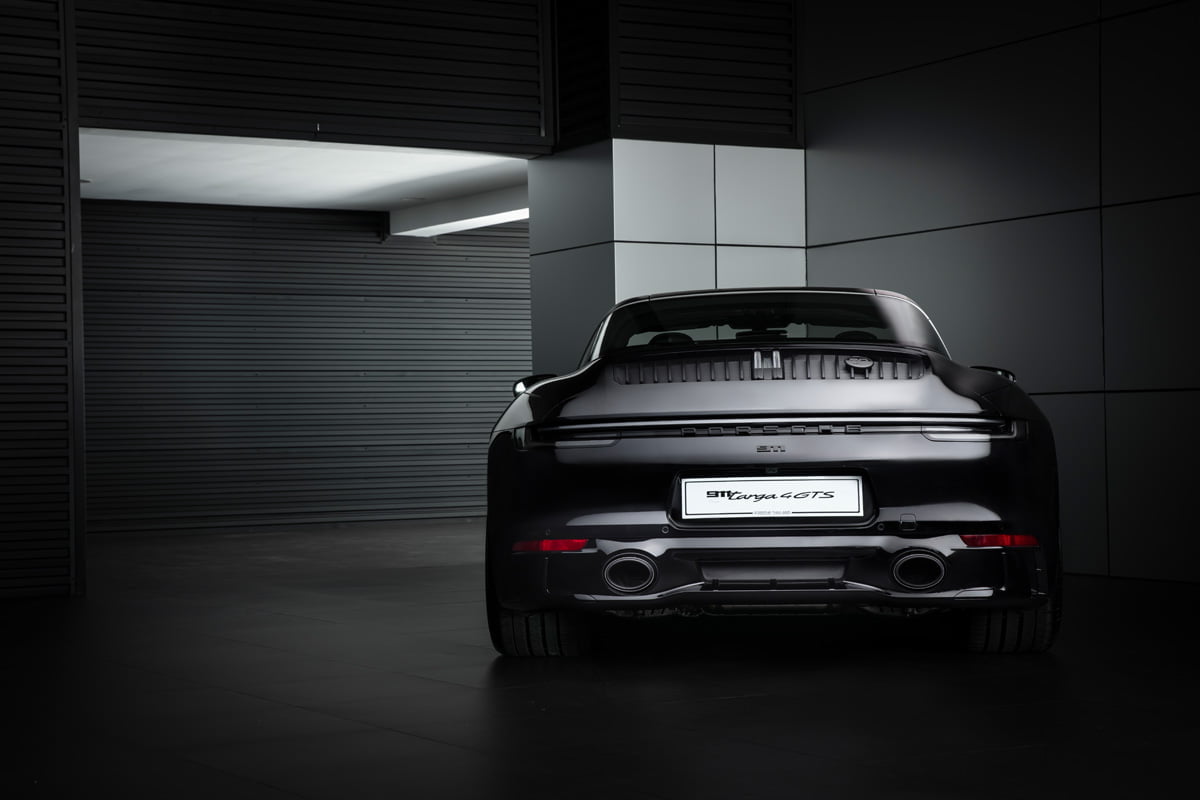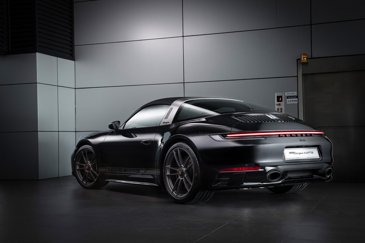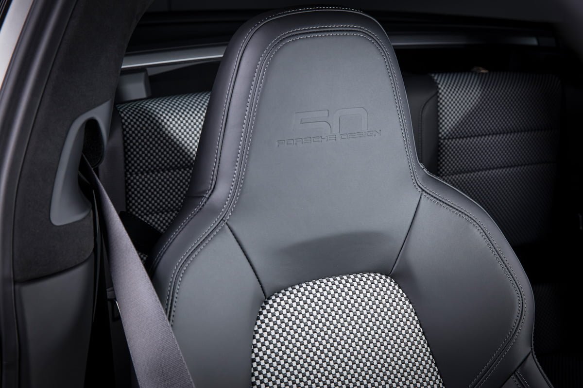 ปอร์เช่ 911 Targa 4 GTS Edition 50 Years Porsche Design มาพร้อมตัวถังภายนอกสีดำ หรือสี Jet Black Metallic ที่สง่างาม ทรงพลัง เพื่อสะท้อนภาพลักษณ์ของแบรนด์ Porsche Design (ปอร์เช่ ดีไซน์) ได้อย่างแท้จริงโดย Roland Heiler กรรมการผู้จัดการ และหัวหน้าทีมออกแบบของ Studio F.A. Porsche ใน Zell am See ได้กล่าวเอาไว้ว่า “สีดำ คือสีที่ถูกนำมาใช้ในช่วงแรกของการผลิตนาฬิกาข้อมือรุ่น Chronograph I จากแบรนด์ปอร์เช่ ดีไซน์ (Porsche Design) และนั่นคือเหตุผลที่เราเลือกใช้เฉดสีดำสำหรับรถสปอร์ตลิมิเต็ด อิดิชั่น (limited-edition) ของเรารุ่นนี้ พร้อมกับชิ้นงานตกแต่งแพลทตินั่ม (Platinum) อีกทั้งสีดำช่วยเสริมและยกระดับความดุดันให้แก่ตัวถังภายนอก เหมือนกับการตกแต่งด้วยโครเมียมในแบบที่เคยใช้มา”