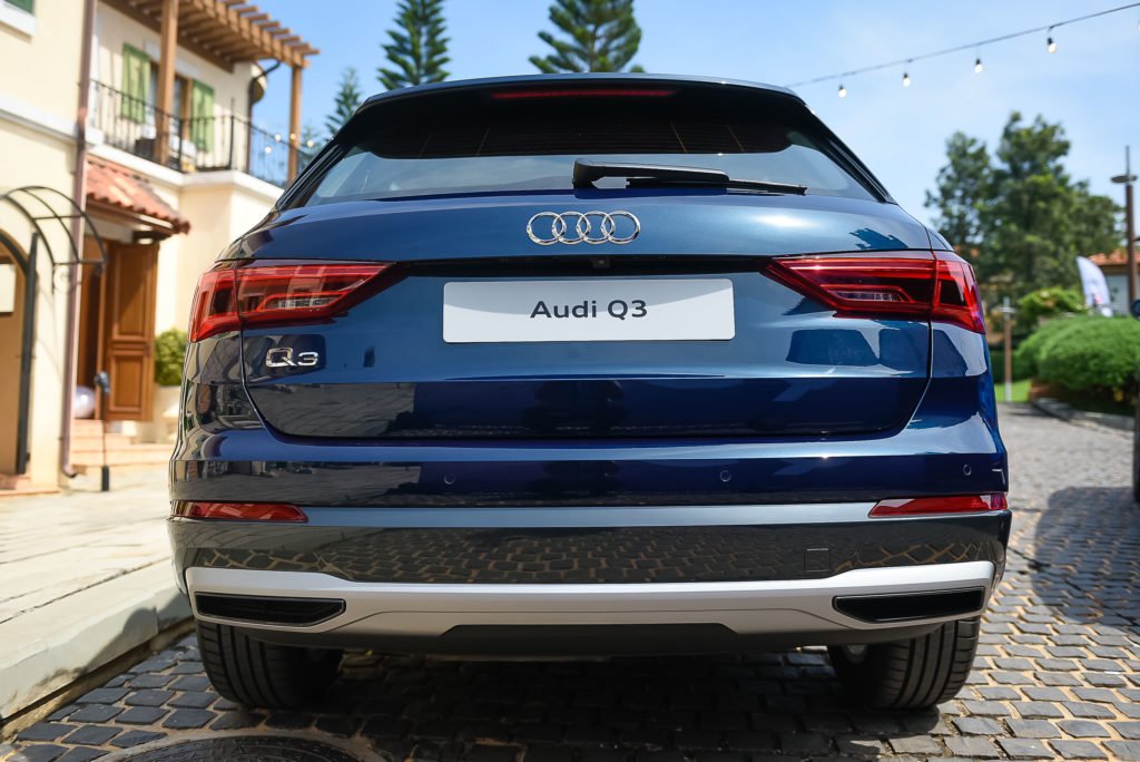 ทั้ง 2 รูปแบบตัวถังมาพร้อมกับชุดแต่งภายนอก S line ที่มีความสปอร์ตโฉบเฉี่ยว ประกอบด้วย กันชนหน้า-หลัง สเกิร์ตข้าง ราวหลังคา และสปอยเลอร์หลัง ไฟท้ายมีการออกแบบใหม่ทั้งหมด เป็นไฟ LED ทรงลิ่ม ทำให้ดูโฉบเฉี่ยวและทันสมัย พร้อมเพิ่มความสะดวกในการใช้งานด้วยประตูท้ายที่เปิด-ปิด ด้วยระบบไฟฟ้า Q3 ยังนับเป็นรถที่ให้พื้นที่บรรทุกสัมภาระมากที่สุดถึง 530-1525 ลิตร ขณะที่ Q3 Sportback จะมีความจุลดลงเล็กน้อย