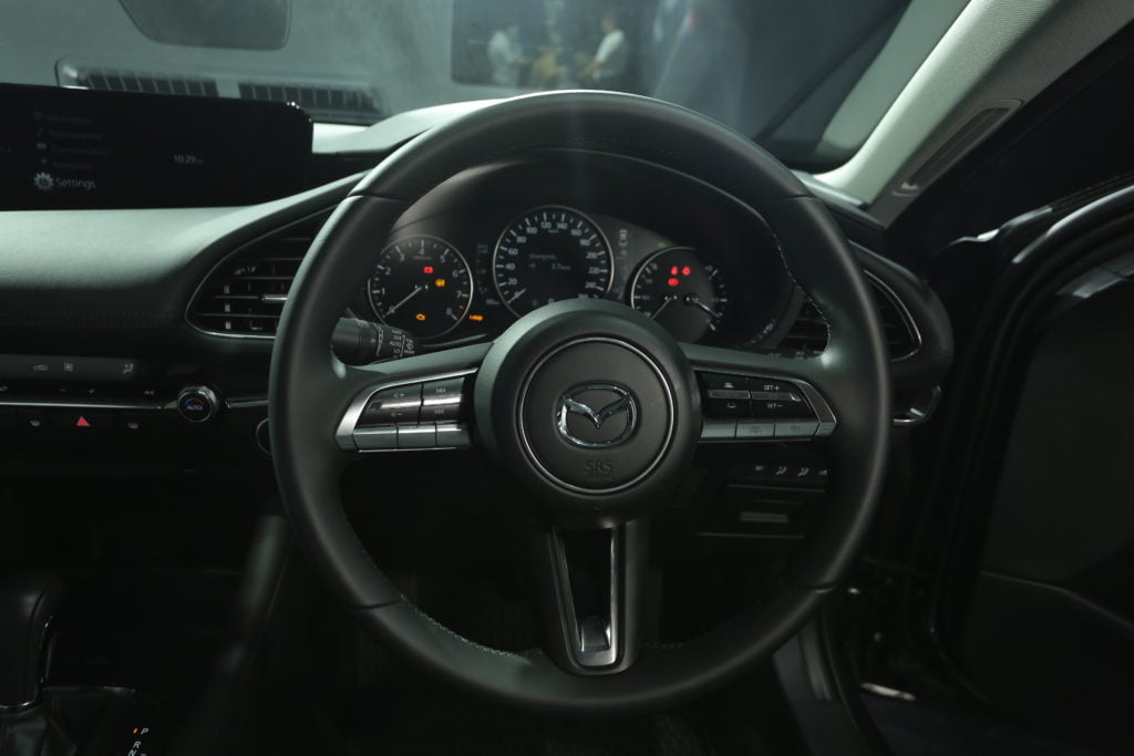 ห้องโดยสารของ All-New Mazda 3 หรูหราด้วยวัสดุซอฟต์ทัชเกรดพรีเมียม ผ่านการออกแบบและพัฒนาใหม่ทั้งหมดในทุกรายละเอียดโดยยึดหลักมนุษย์เป็นศูนย์กลางในการจัดวางตำแหน่งอุปกรณ์ต่างๆ ในตำแหน่งที่เหมาะสม ไม่ว่าจะเป็นเบาะดีไซน์ใหม่ที่โอบกระชับ รองรับสรีระช่วยให้กระดูกเชิงกรานตั้งตรง แนวกระดูกสันหลังคงรูปตัว S เหมือนขณะเดิน เพื่อให้การขับขี่ทำได้อย่างเป็นธรรมชาติและสมดุล