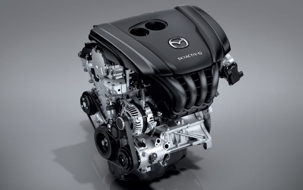 เครื่องยนต์สกายแอคทีฟของ All-New Mazda 3 เป็นบล็อกเดิมกับตัวปัจจุบันแต่ได้รับการปรับปรุงรายละเอียดชิ้นส่วนภายในใหม่ หัวฉีดดีไซน์ใหม่ ความจุเท่าเดิมที่ขนาด 2.0 ลิตร ฉีดเชื้อเพลิงเข้าสู่ห้องเผาไหม้โดยตรง อัตราส่วนกำลังอัด 13.0:1 ให้กำลังสูงสุด 165 แรงม้า ที่ 6,000 รอบต่อนาที แรงบิดสูงสุด 213 นิวตัน-เมตร ที่ 4,000 รอบต่อนาที จับคู่กับเกียร์อัตโนมัติ SKYACTIV-DRIVE 6 สปีด ขับเคลื่อนล้อหน้า รองรับน้ำมันสูงสุด E85 ประหยัดน้ำมันสูงสุด 15.9 กิโลเมตรต่อลิตร