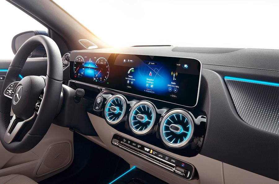 ภายในของ GLA ใหม่เหมือนกับรถเล็กของ Mercedes รุ่นใหม่ๆ ที่เปิดตัวไปก่อนหน้านี้ โดดเด่นด้วยแดชบอร์ดที่มาพร้อมแถบหน้าจอดิจิทัลแบบลอยตัว ประกอบด้วยจอ 2 จอ คือหน้าปัดขนาด 7.0 นิ้ว และจอของระบบสาระบันเทิงที่สามารถอัพเกรดเป็นขนาด 10.3 นิ้วได้ หน้าจอระบบสาระบันเทิงนี้แสดงผลด้วยระบบปฏิบัติการ MBUX รุ่นล่าสุด รองรับการสั่งการด้วยระบบสัมผัสและคำสั่งเสียง นอกจากนี้ยังมี Head-up display แสดงข้อมูลการขับขี่ที่กระจกบังลมหน้าผู้ขับ