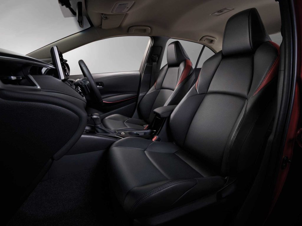 ห้องโดยสารของรุ่นไฮบริดจะมาในโทนสีดำ แดชบอร์ดและแผงประตูเป็นวัสดุซอฟท์ทัช เบาะหนังแท้ผสมวัสดุสังเคราะห์ ขณะที่รุ่น GR Sport มีการตกแต่งแซมด้วยสีแดงให้ดูเร้าอารมณ์ยิ่งขึ้น เบาะนั่งคู่หน้าเป็นแบบปรับไฟฟ้าพร้อมตัวดันหลัง เบาะหลังพับได้ 60/40 พร้อมที่วางแขนช่องวางแก้วน้ำ