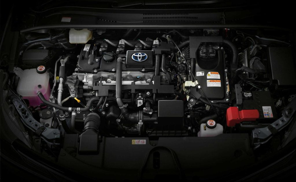ปิดท้ายด้วยเครื่องยนต์ไฮบริด 1.8 ลิตร ที่เป็นการทำงานผสานกันระหว่างเครื่องเบนซิน 4 สูบ รหัส 2ZR-FXE VVT-i ให้กำลังสูงสุด 98 แรงม้า ที่ 5,200 รอบ/นาที แรงบิดสูงสุด 142 นิวตันเมตร ที่ 3,600 รอบ/นาที ทำงานร่วมกับมอเตอร์ไฟฟ้า Permanent Magnet Synchronous Motor แรงดันไฟฟ้า 600 โวลต์ ให้กำลังสูงสุด 72 แรงม้า แรงบิด 163 นิวตันเมตร แบตเตอรี่เป็นแบบ Nickel metal Hydride (Ni-MH) แรงดันไฟฟ้า 201.6 โวลต์ 28 Modules 6.5 Ah รวมพละกำลังจากทั้งเครื่องยนต์ และมอเตอร์ไฟฟ้าให้กำลังสูงสุด 122 แรงม้า จับคู่กับเกียร์อัตโนมัติ แบบ E-CVT ขับเคลื่อนล้อหน้า