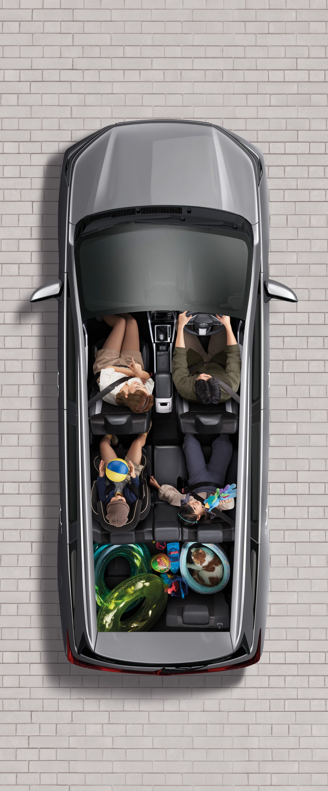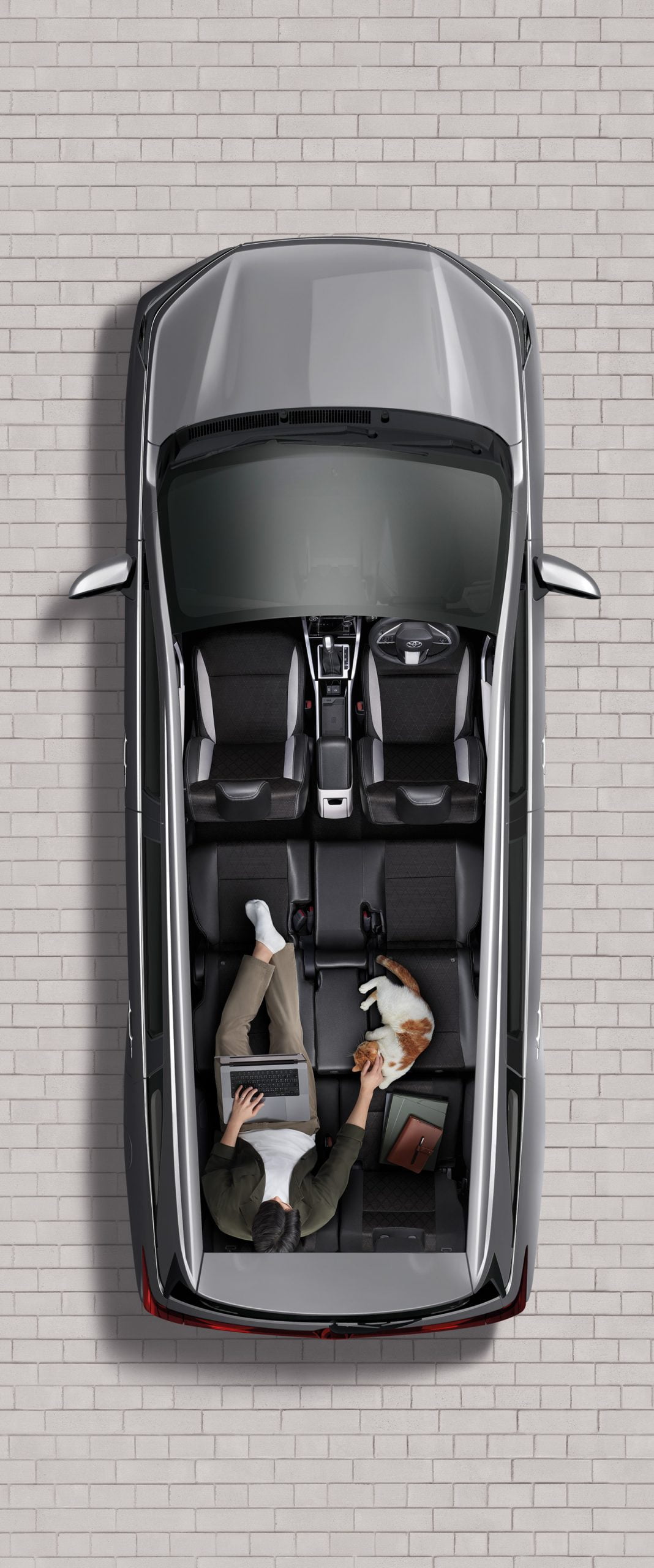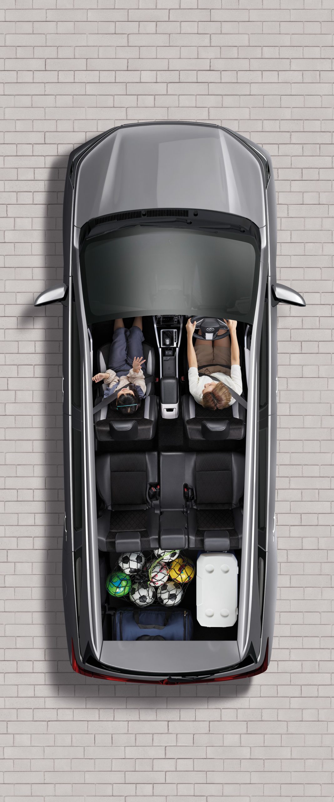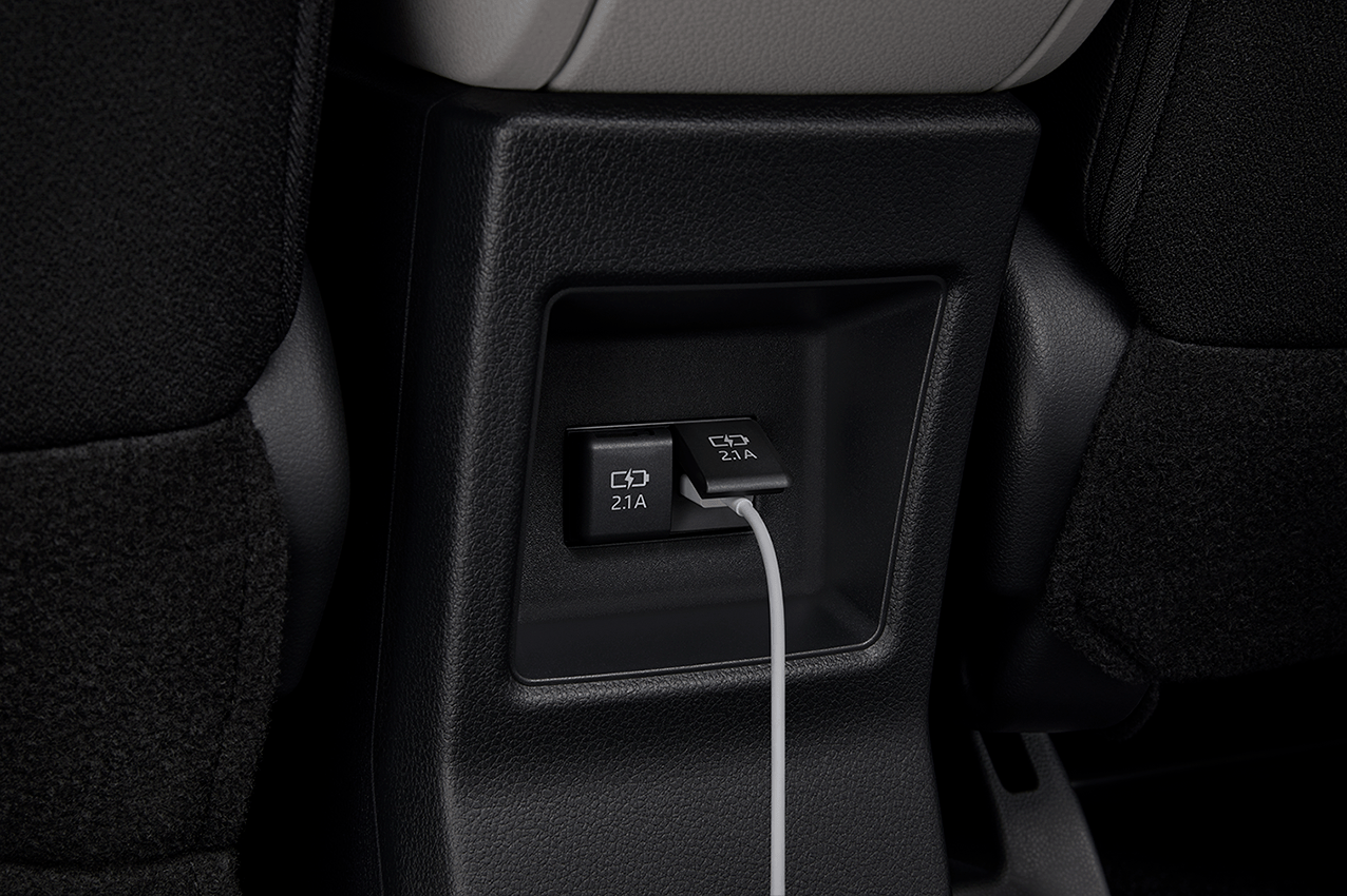 นอกจากนี้ยังออกแบบให้จัดที่นั่งได้อย่างยืดหยุ่นให้อิสระในการใช้รถมากยิ่งขึ้น ในส่วนของเบาะนั่งนุ่มสบายซึ่งเป็นเบาะหนังสังเคราะห์และผ้าสีทูโทน (ดำและเทา) ตกแต่งด้วยด้ายสีเทา พร้อมช่องใส่ Tablet สามารถนั่งชมรายการโปรดได้ตลอดการเดินทาง กว้างขวาง นั่งสบาย สามารถพับเบาะเพื่อโดยสารในที่นั่งแถวที่ 3 ได้ง่ายดาย นอกจากนี้มีช่องต่ออุปกรณ์ไฟฟ้า 12V บริเวณกล่องเก็บของและเบาะนั่งแถวที่ 3 และช่องต่อ USB 2 ช่อง สำหรับผู้โดยสารแถว 2 รวมไปถึงที่วางแก้วมากมายทุกที่นั่งรวม 15 จุด เพิ่มความหรูหราอีกระดับด้วยไฟ Ambient light ในห้องโดยสาร พร้อมระบบปรับอากาศอัตโนมัติ และยังมาพร้อมกล่องเก็บของด้านท้ายอีกด้วย