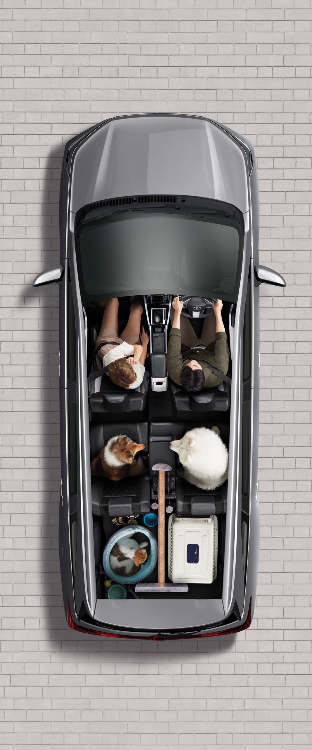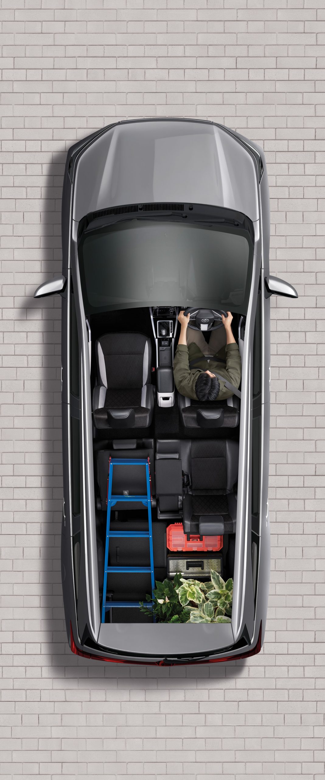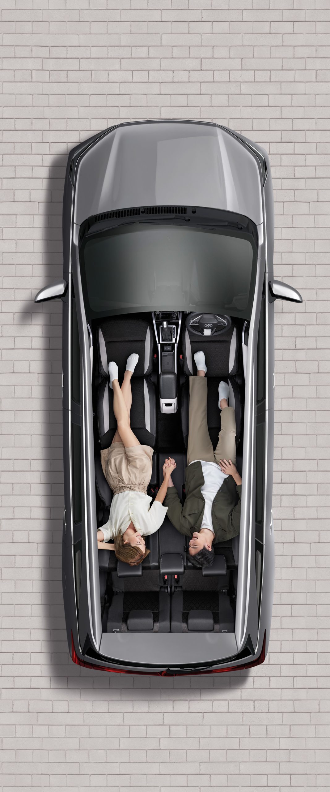 นอกจากนี้ยังออกแบบให้จัดที่นั่งได้อย่างยืดหยุ่นให้อิสระในการใช้รถมากยิ่งขึ้น ในส่วนของเบาะนั่งนุ่มสบายซึ่งเป็นเบาะหนังสังเคราะห์และผ้าสีทูโทน (ดำและเทา) ตกแต่งด้วยด้ายสีเทา พร้อมช่องใส่ Tablet สามารถนั่งชมรายการโปรดได้ตลอดการเดินทาง กว้างขวาง นั่งสบาย สามารถพับเบาะเพื่อโดยสารในที่นั่งแถวที่ 3 ได้ง่ายดาย นอกจากนี้มีช่องต่ออุปกรณ์ไฟฟ้า 12V บริเวณกล่องเก็บของและเบาะนั่งแถวที่ 3 และช่องต่อ USB 2 ช่อง สำหรับผู้โดยสารแถว 2 รวมไปถึงที่วางแก้วมากมายทุกที่นั่งรวม 15 จุด เพิ่มความหรูหราอีกระดับด้วยไฟ Ambient light ในห้องโดยสาร พร้อมระบบปรับอากาศอัตโนมัติ และยังมาพร้อมกล่องเก็บของด้านท้ายอีกด้วย