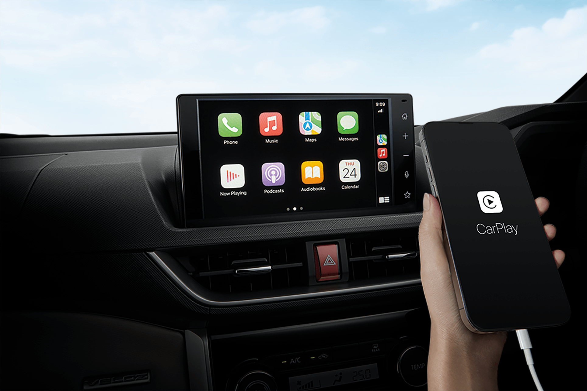 ทั้งนี้ ALL NEW TOYOTA VELOZ ยังมาพร้อมที่เปิดประตูขนาดใหญ่โดดเด่นน่าสนใจ ให้ความรู้สึกถึงคุณภาพระดับพรีเมียม อีกทั้งยังมีดีไซน์คอนโซลแบบสูงและบุด้วยวัสดุนิ่ม มีมาตรวัดแบบเรืองแสง พร้อมจอแสดงผลข้อมูลการขับขี่ แบบจอสี TFT ขนาด 7 นิ้ว มีดีไซน์ให้เลือก 4 แบบ และยังมีที่ชาร์จโทรศัพท์แบบไร้สาย (Wireless charger) และยังมีพวงมาลัยพาวเวอร์ไฟฟ้า EPS ปรับได้ 4 ทิศทาง สูง-ต่ำ และ ใกล้-ไกล