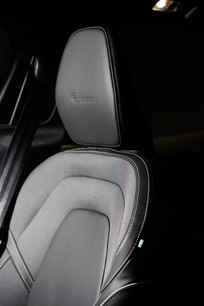 ห้องโดยสารรุ่น R-Design นำเสนอมาตรฐานขั้นสูงของงานฝีมือแบบสแกนดิเนเวียน มือจับประตูรถตกแต่งด้วยอลูมิเนียมและแผงไฟในโทนสีที่สอดประสานกลมกลืน เสริมความสวยงามด้วยการฝังลายแบบ Metal Décor Inlays และพวงมาลัยแบบ R-design เบาะคู่หน้าปรับไฟฟ้าพร้อมด้วยฟังก์ชั่นบันทึกความจำ เบาะคนขับจะมีตัวดันหลังปรับไฟฟ้า 4 ทิศทาง